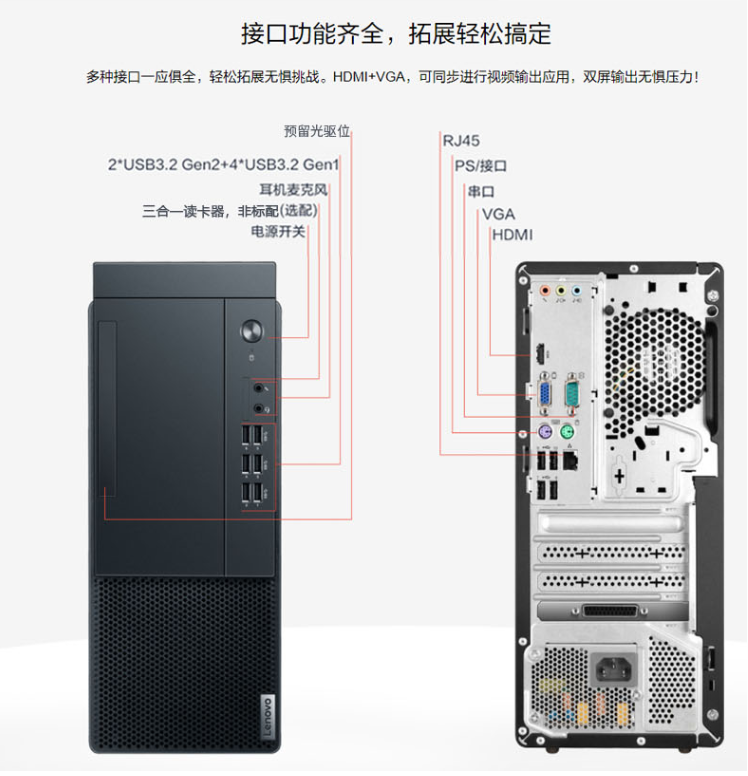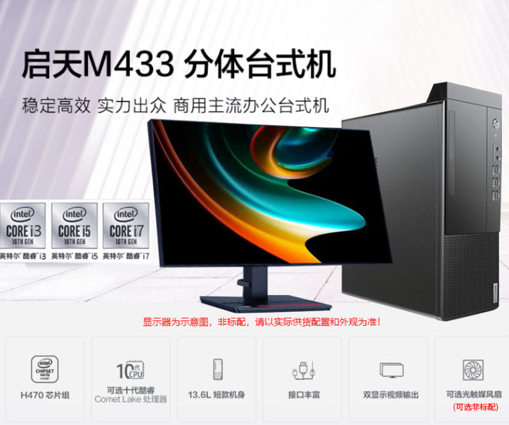 >联想启天M433台式机I510500/16G/1T+256G/2G独显win10国产23.8英寸显示器
