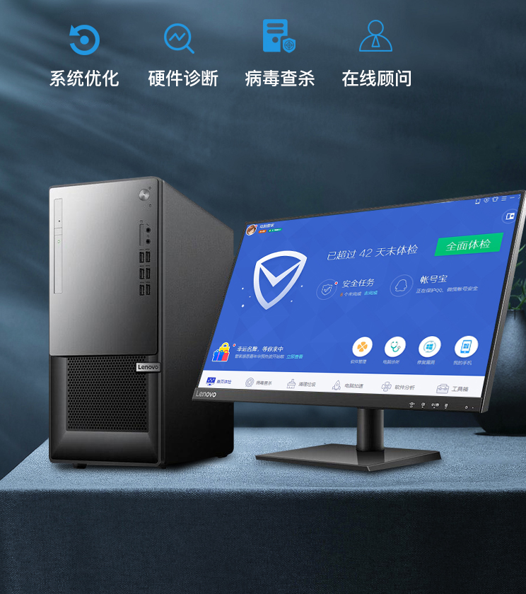 联想(Lenovo) 扬天T4900Ks 台式计算机 主机+27英寸显示器 定制:i5-10400 8G 1T+256G 集显 光驱 WIN11
