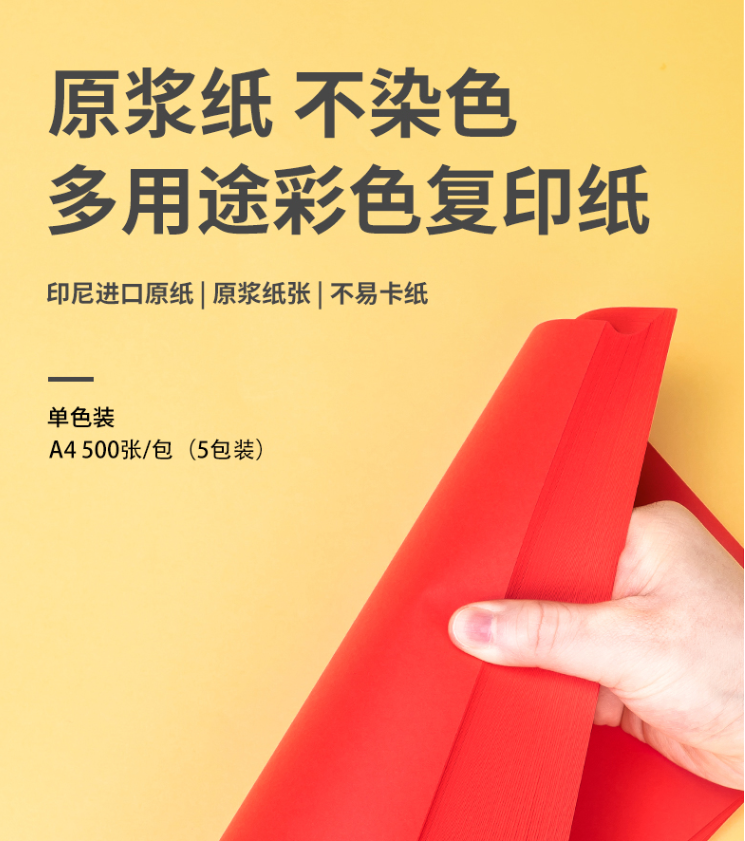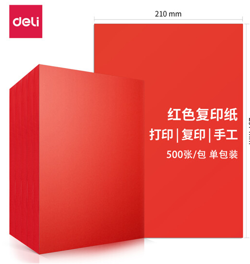 >得力(deli)7758 卡纸 A4 80g 大红色卡纸 彩纸复印纸 500张/包