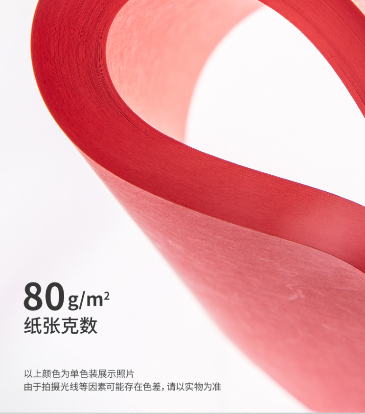 得力(deli)7758 卡纸 A4 80g 大红色卡纸 彩纸复印纸 500张/包
