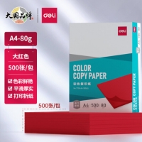 >得力(de'li)7758 卡纸 A4 80g 大红色卡纸 彩纸复印纸 500张/包