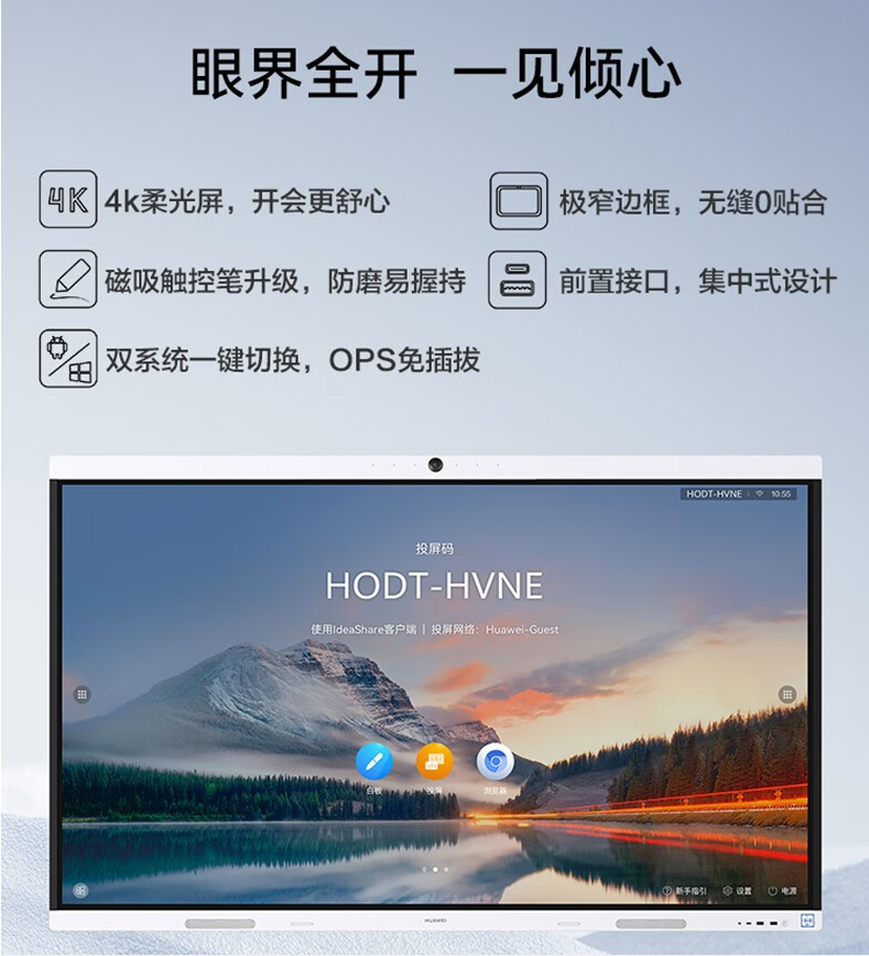 >华为(HUAWEI)IdeaHub B2 触控一体机 B2 86吋+i7 模块 智能协作视频会议平板一体机教育电子白板交互式大屏 (含遥控器+落地支架)