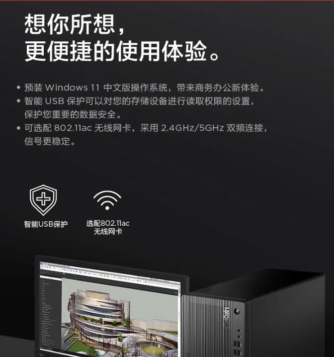 >联想(Lenovo) E97S 台式计算机 i7-10700/8G/1T+256GB GT730/集显W11/23.8英寸