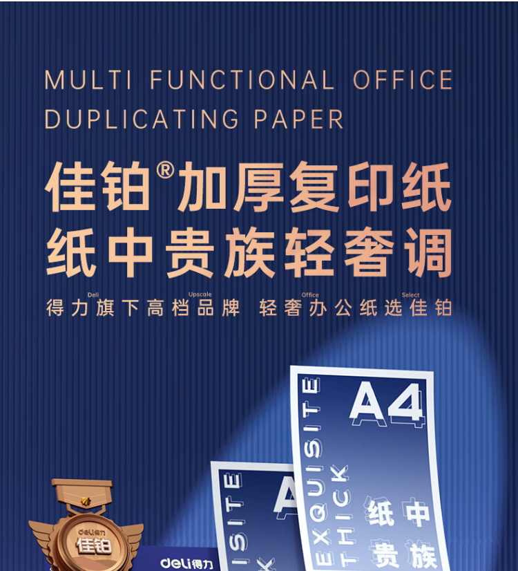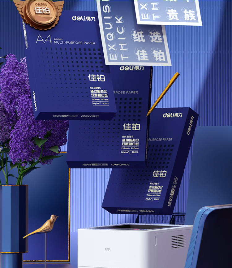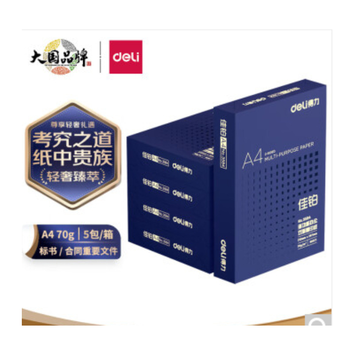 得力(deli) 3585佳铂 复印纸 A4 70g 500张/5包 整箱2500张