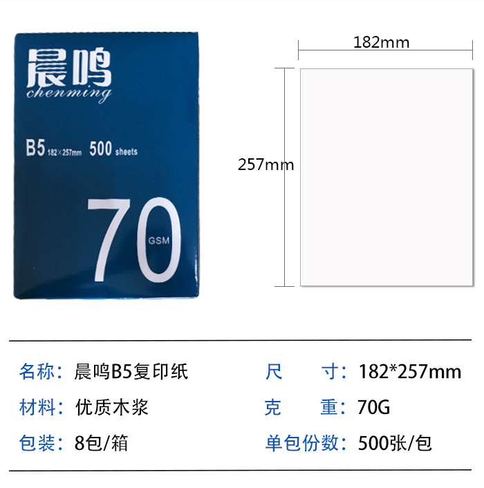 晨鸣(chenming)B5 复印纸 70g 单包500张 整箱8包 白色