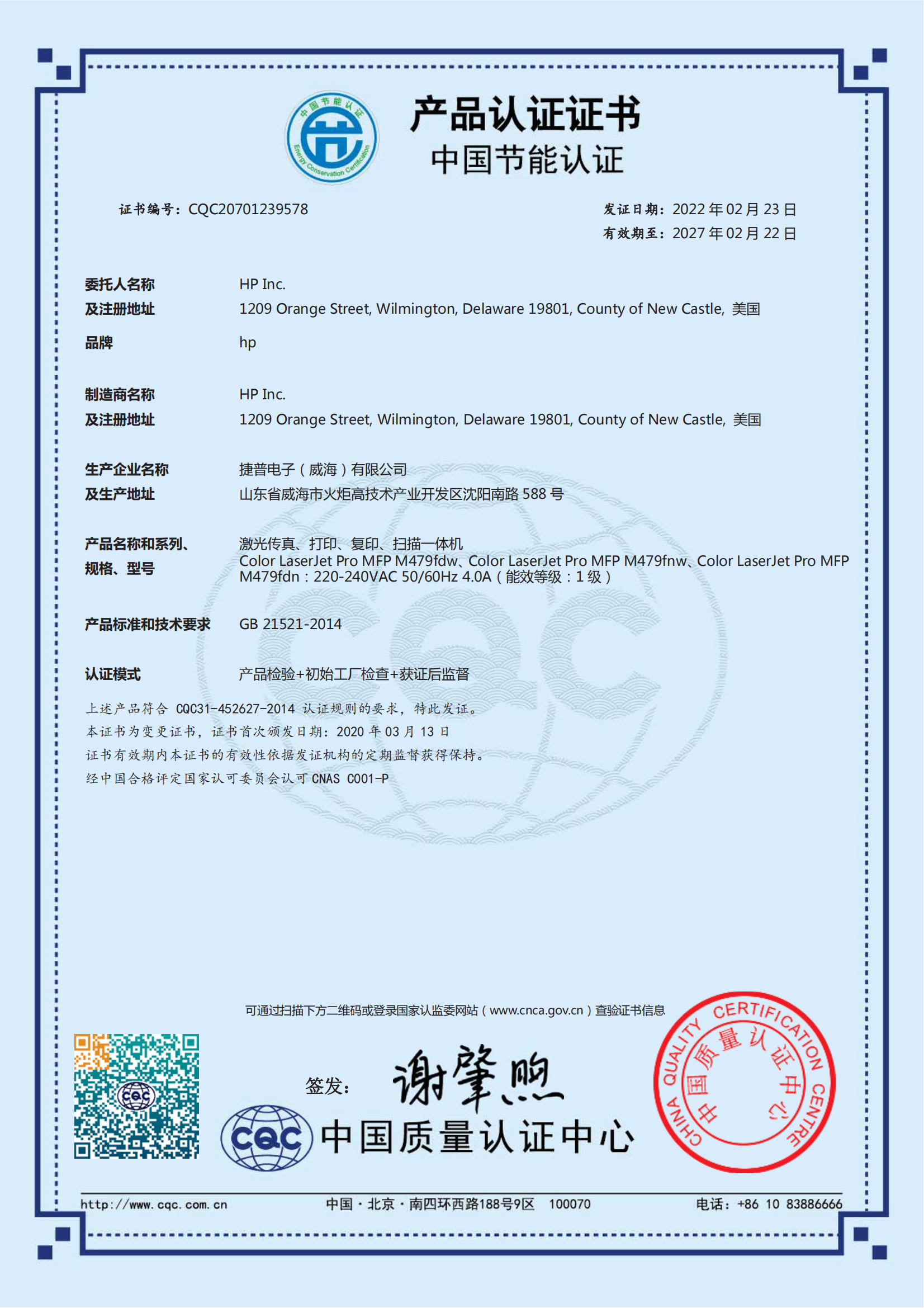 惠普(HP) M479dw A4彩色打印机 专业级彩色激光多功能一体机 打印复印扫描三合一 自动双面打印 无线连接