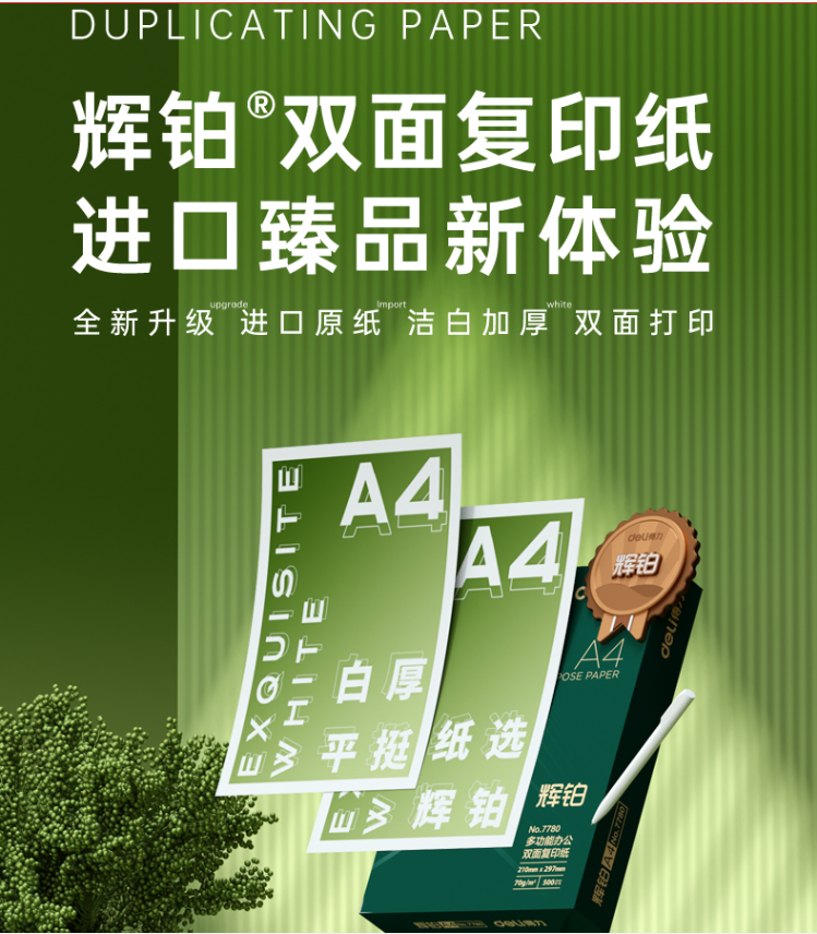 >得力(deli) 7780 复印纸 辉铂A470g打印纸 500张一包 单包复印纸 进口原纸 双面草稿纸