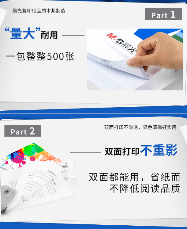 >晨光 (M&G) 011 复印纸 晨光美印 A4 70g 单包500张 500页 打印机纸学生草稿纸白纸办公用纸 绿晨光