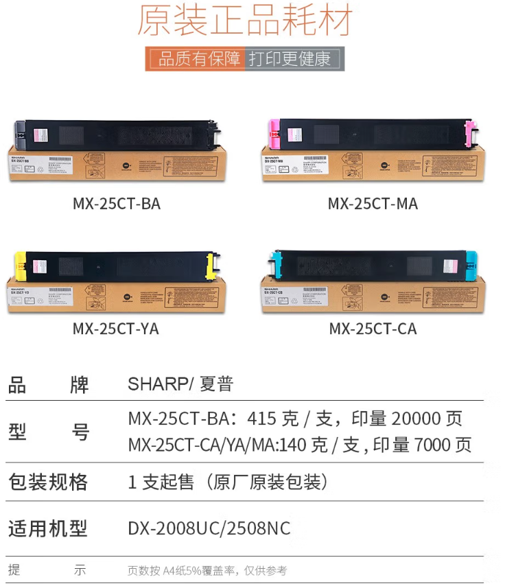 夏普(SHARP)DX-25CTMA 喷墨盒 (适用DX2008UC/2508NC机型)原装红色墨粉盒 约18000页