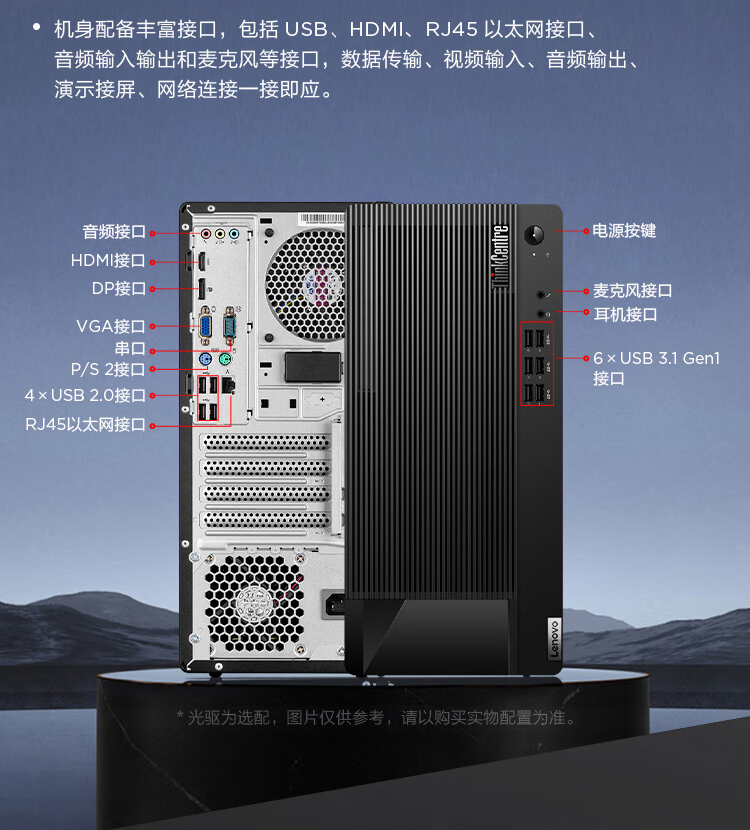 >联想(Lenovo) E97S 台式计算机 i5-10400/8G/1T/集显/23.8英寸 黑色 商用台式机电脑主机 企业办公电脑