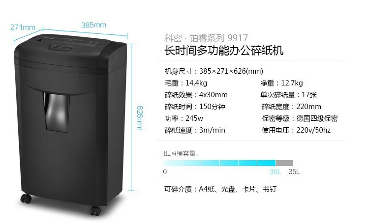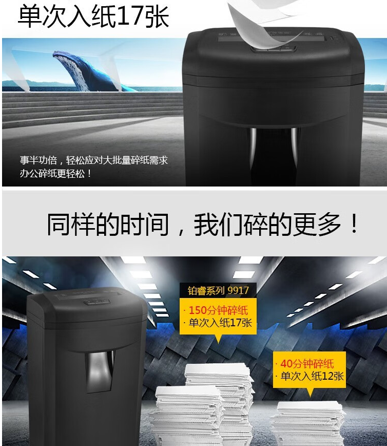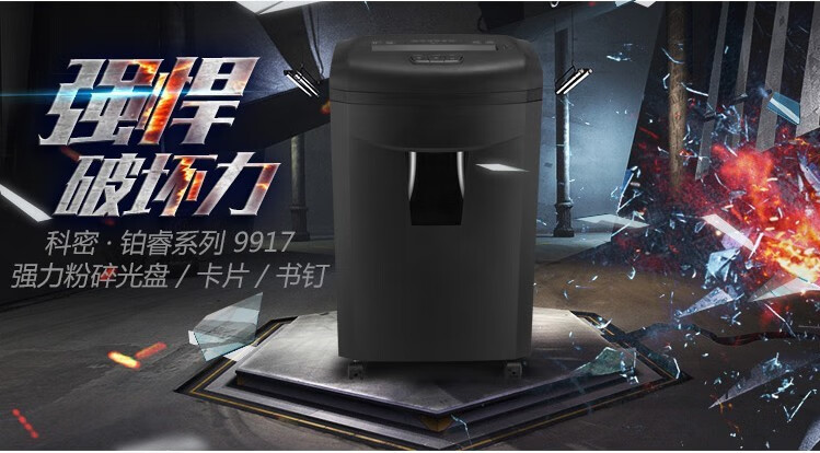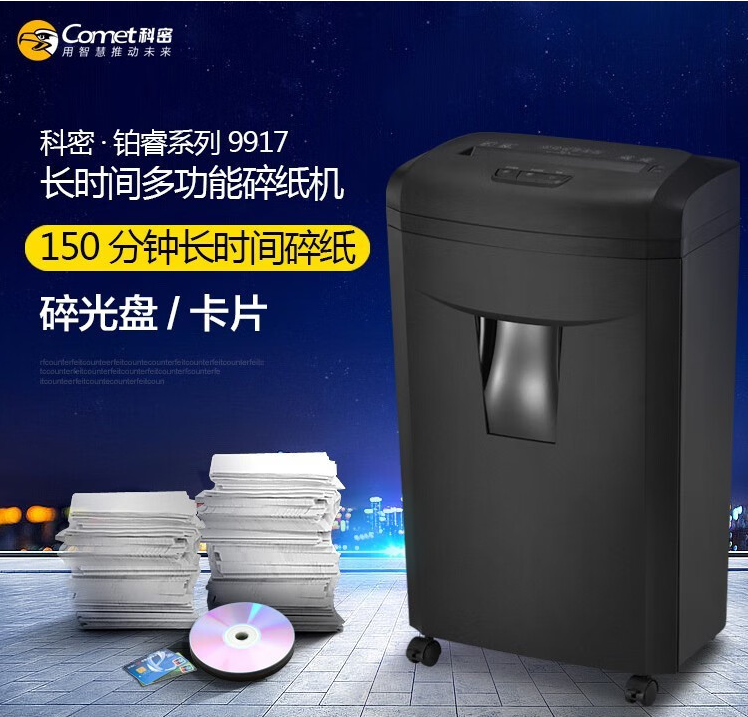 >科密(comet) 铂睿9917 碎纸机 四级保密办公商用粉碎机单次碎纸17张可碎光盘卡片订书针连续碎纸150分钟