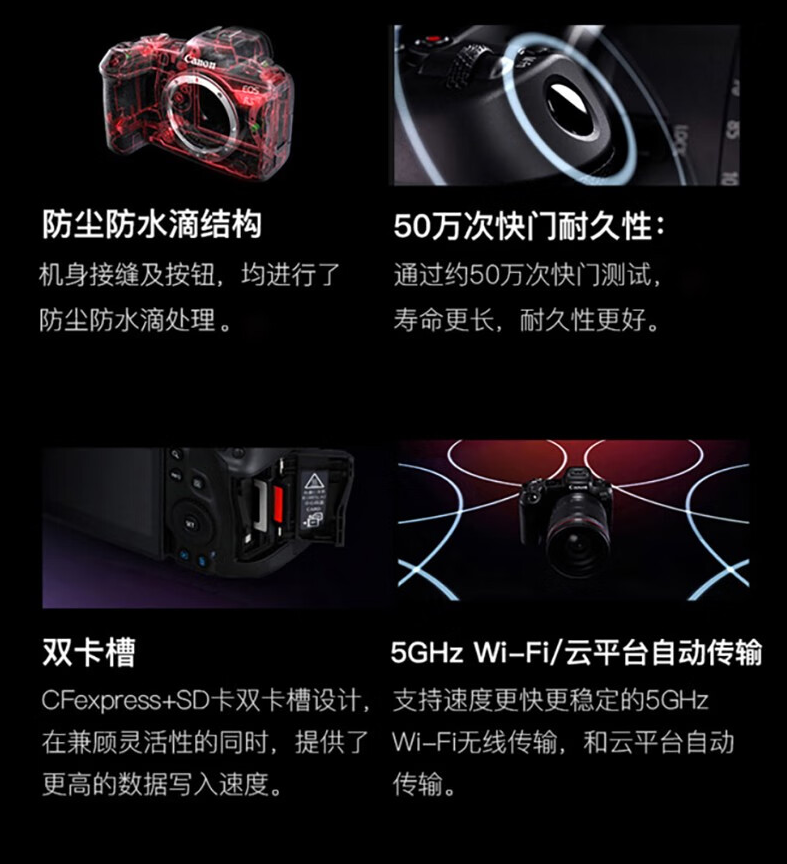 单电微单>佳能(Canon) EOS R5 单电/微单相机 全画幅微单相机 8K数码高清旅游vlog视频 r5旗舰全画幅专业微单 R5机身+RF24-70mm F2.8大三元镜头+RF70-200 F2.8L远摄变焦镜头 镜头套机 (内含:原装