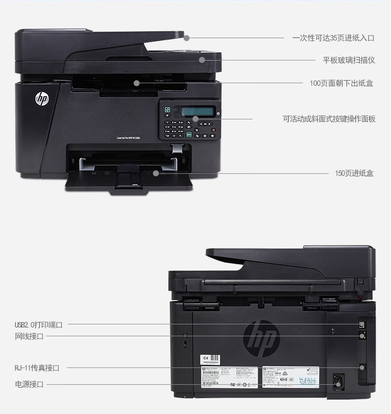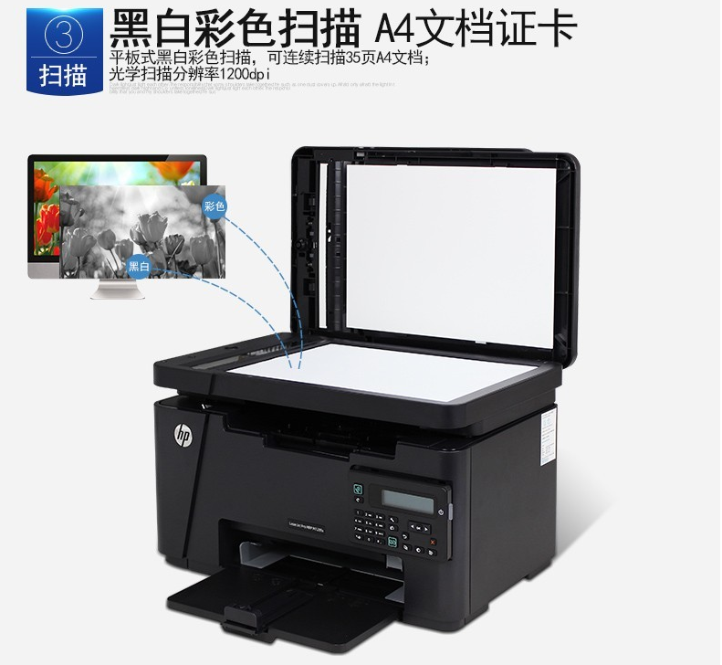 惠普/HP M128fp A4 黑白打印机 激光一体机 打印复印扫描传真