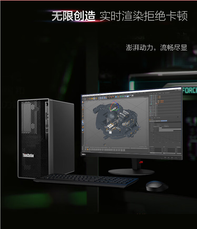 联想/LENOVO(ThinkStation)K 台式计算机 23.8英寸/I5-12500/16G/4TB+512SSD 商用高性能办公台式机