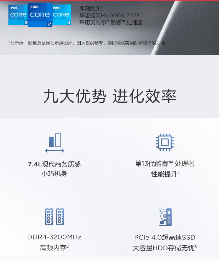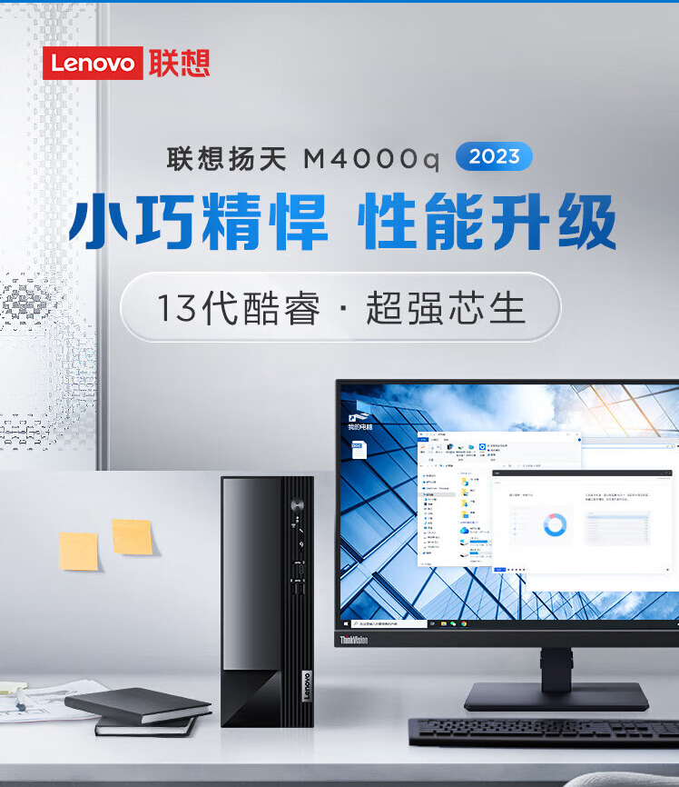 >联想(Lenovo) 扬天M4000Q 台式计算机 13代酷睿i5台式电脑 主机+27英寸窄边显示器 升级i5 13400 16G内存 2T+512G 独立显卡2G 系统WIN11 CD-ROM光驱
