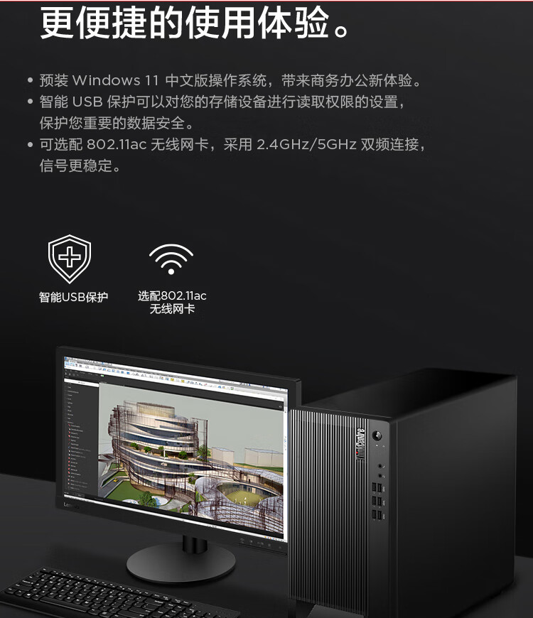 联想(Lenovo) E97S 台式计算机 i5-10400/8G/1T/集显/23.8英寸 黑色 商用台式机电脑主机 办公电脑