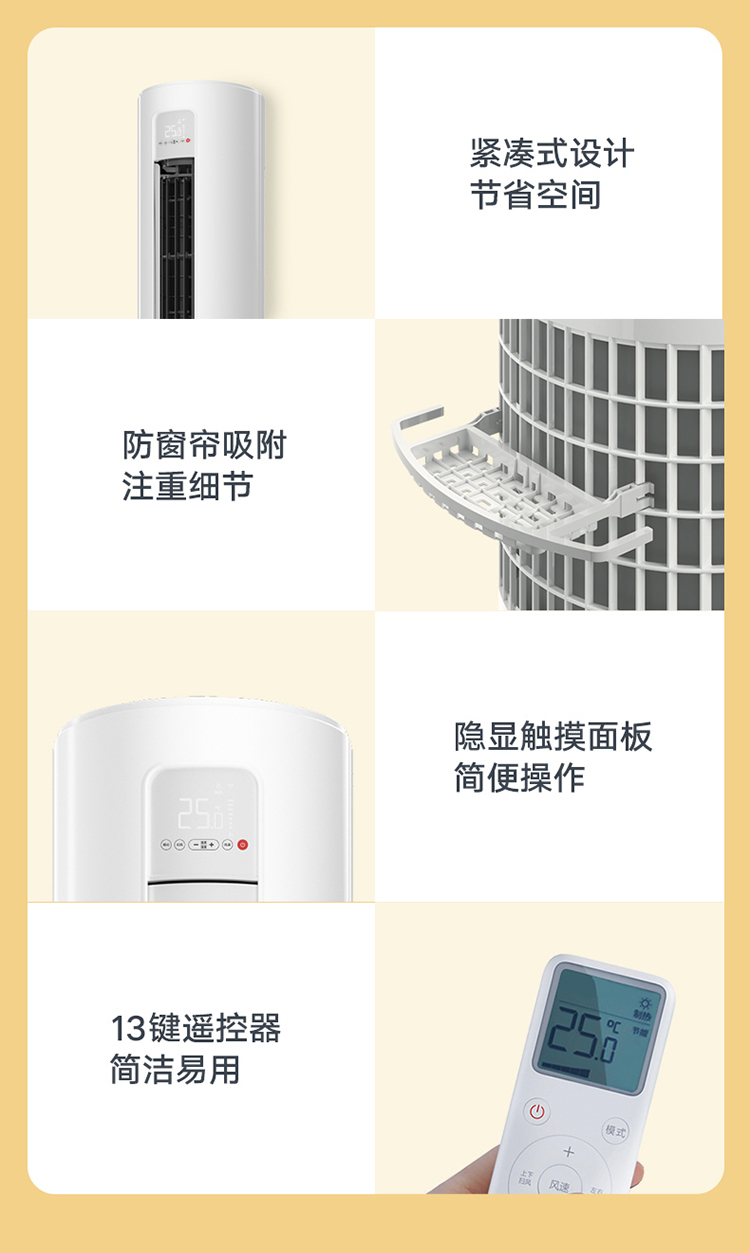 >小米/MI KFR-51LW/N1A3 柜式空调 2匹 新一级能效 变频冷暖 智能自清洁 客厅圆柱空调立式柜机
