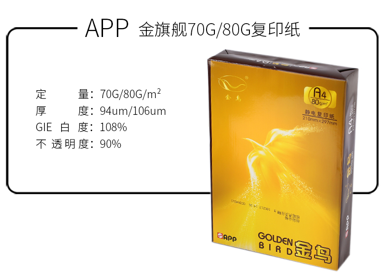 金鸟(GOLDEN BIRD) A4/80g 复印纸 2500张/箱 5包/箱 白色