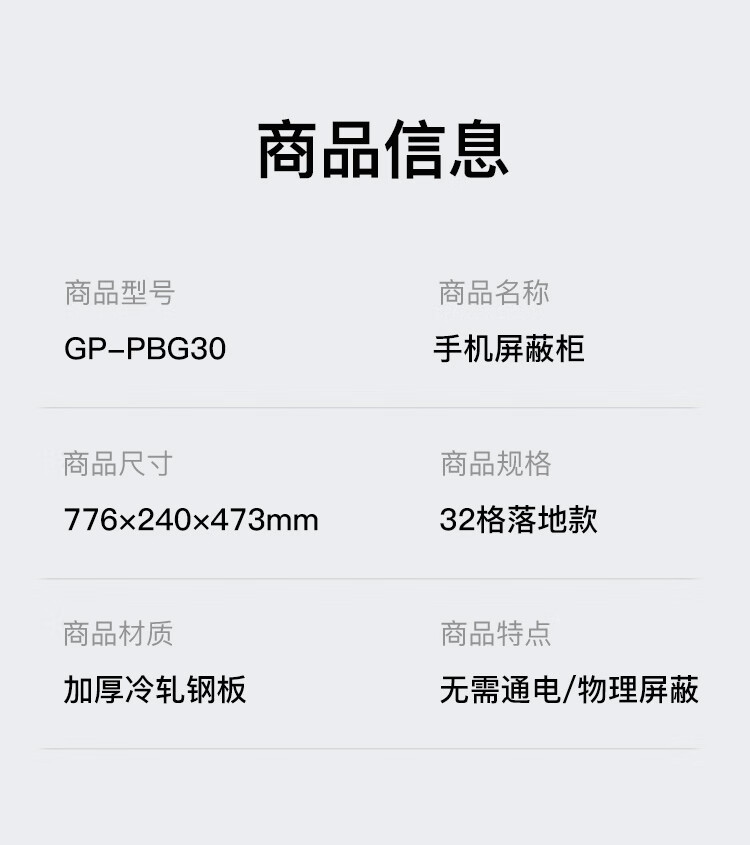 >歌派(GEPAD)GP-PBG30 通用无线电通信设备 32格落地款手机屏蔽柜(带保密认证)会议室保管存放柜 手机信号物理屏蔽柜