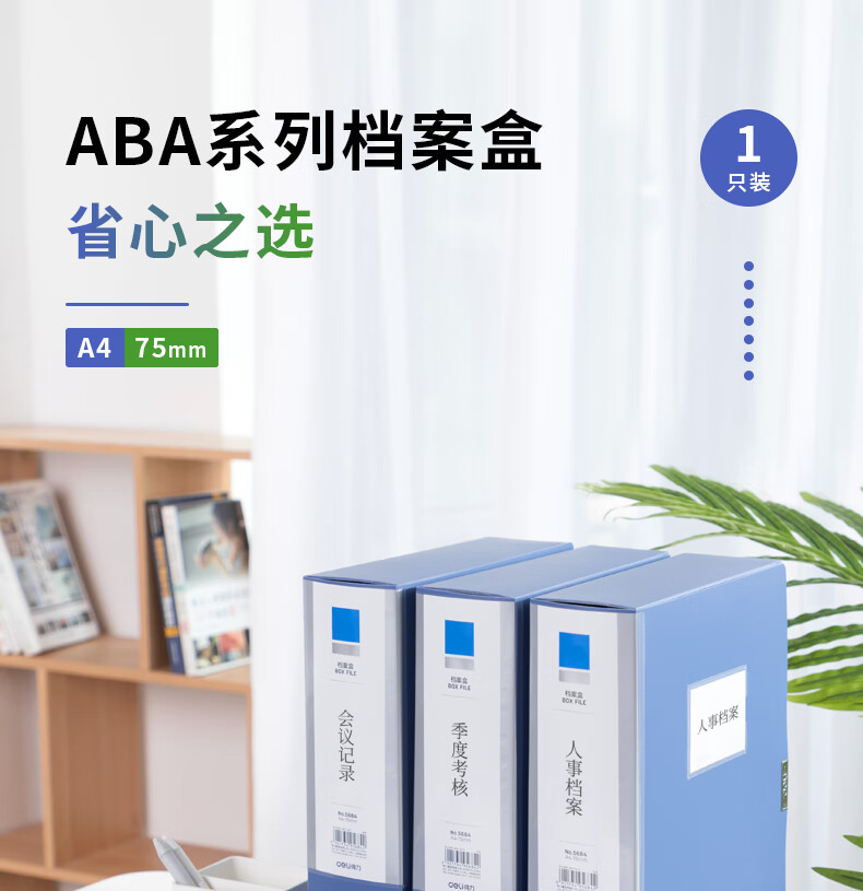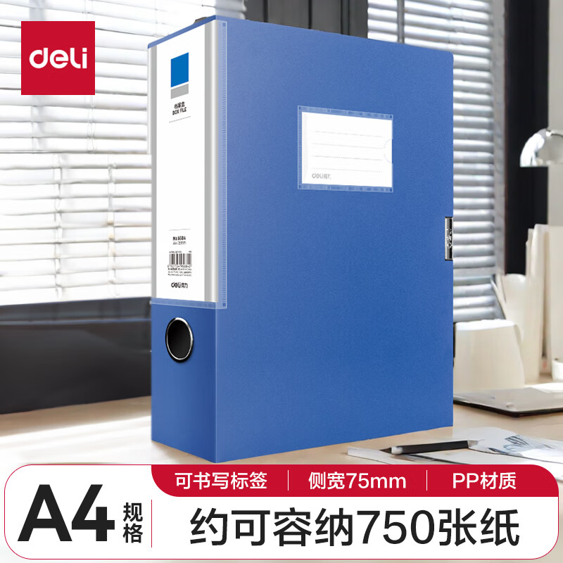 得力(deli) 5684 档案盒 75mm A4塑料文件盒 加厚资料盒 财务凭证 考试收纳