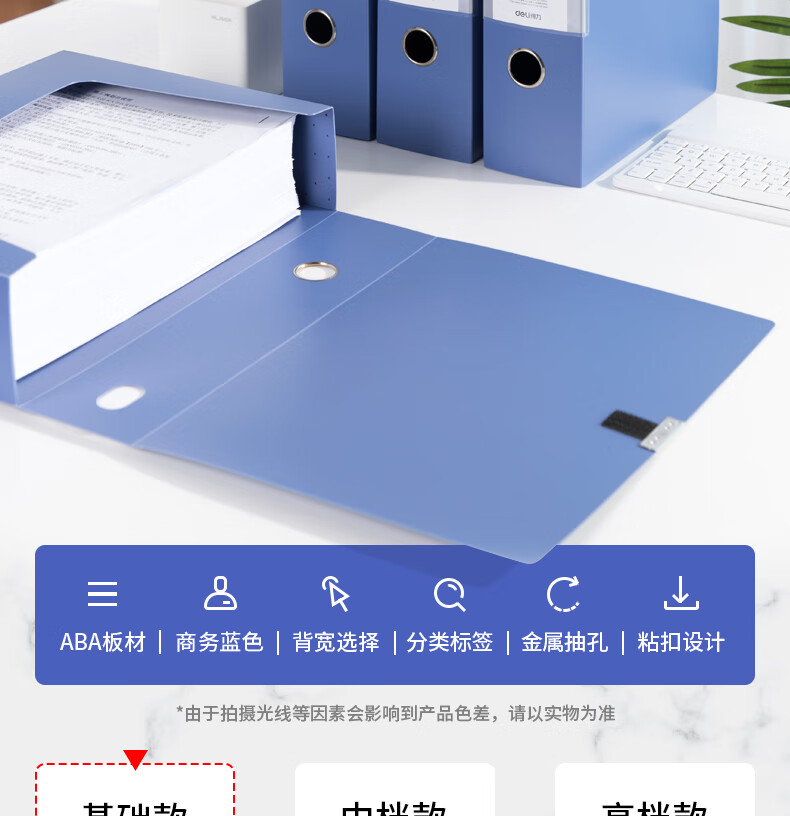 >得力(deli) 5684 档案盒 75mm A4塑料文件盒 加厚资料盒 财务凭证 考试收纳