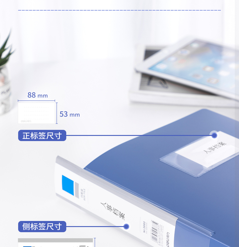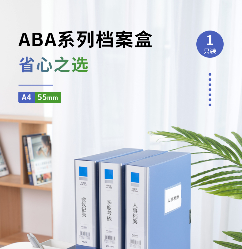 得力(deli) 5683 55mm A4塑料文件盒 档案盒 加厚资料盒 财务凭证考试收纳