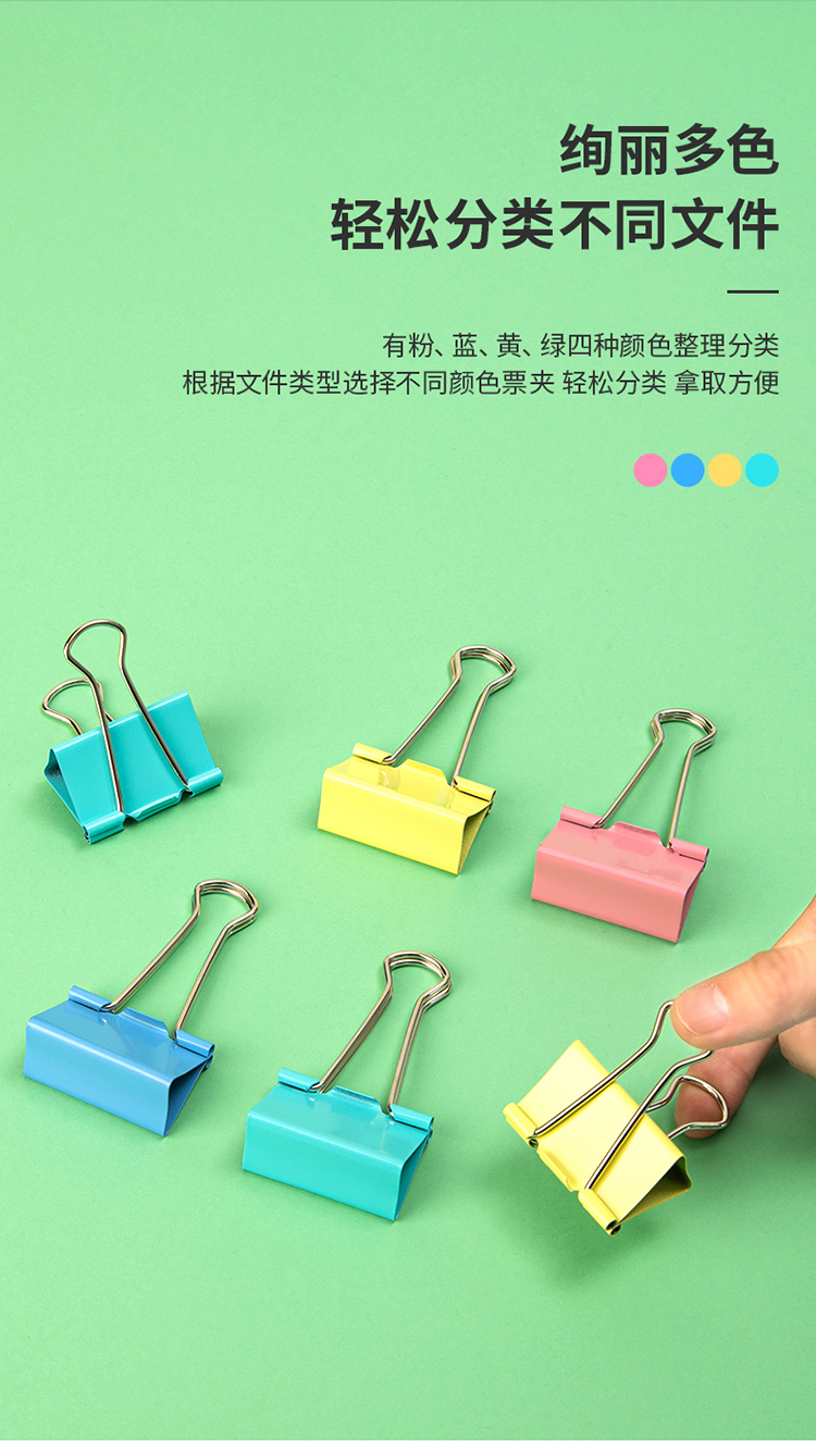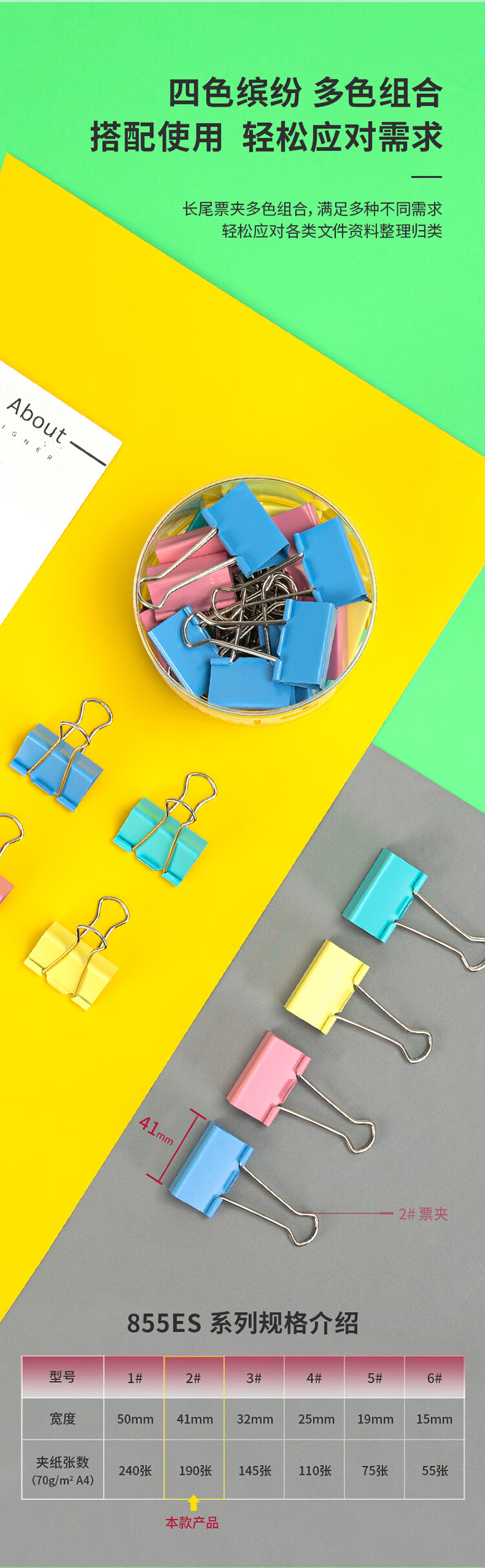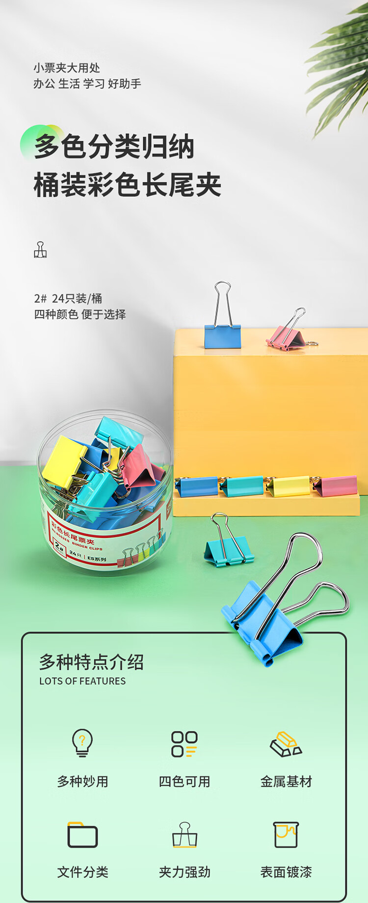 得力(deli) 8552ES 24只41mm彩色长尾夹票夹 2#大号金属燕尾夹 票据文件夹子 24只/筒