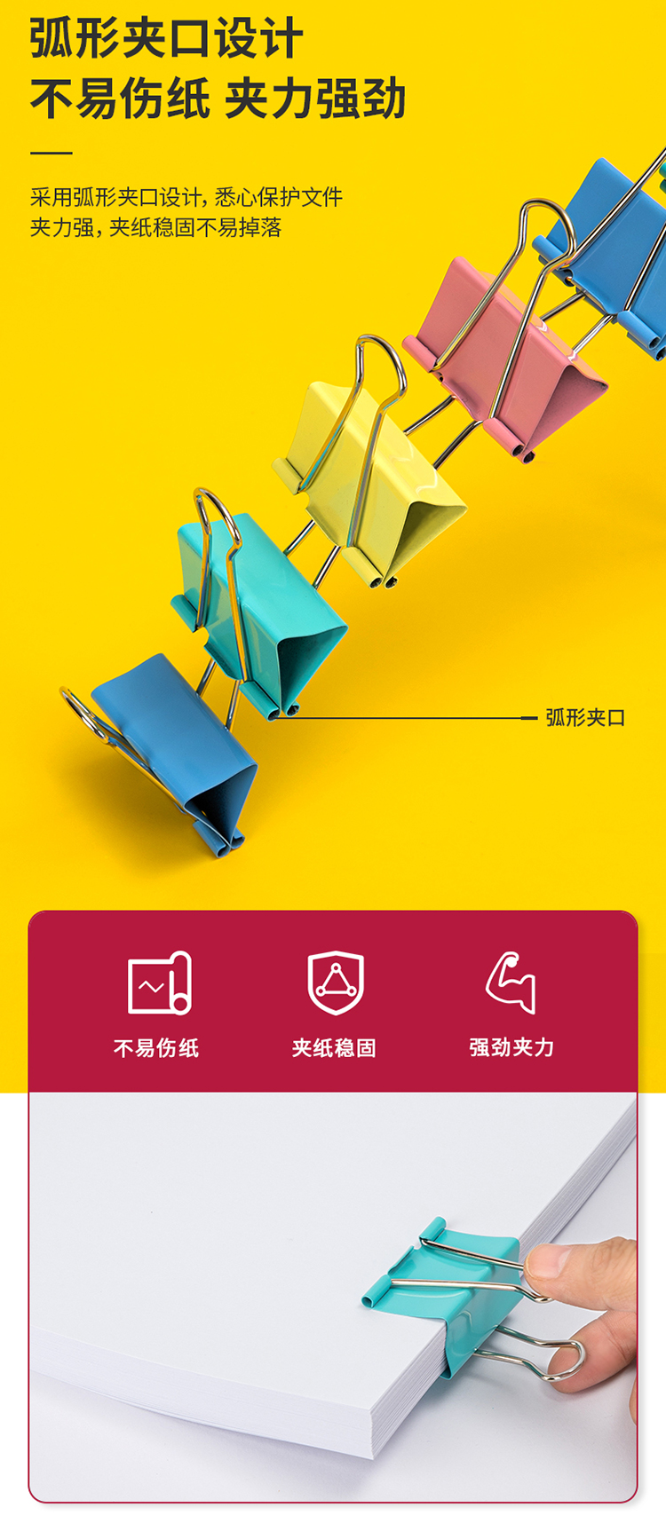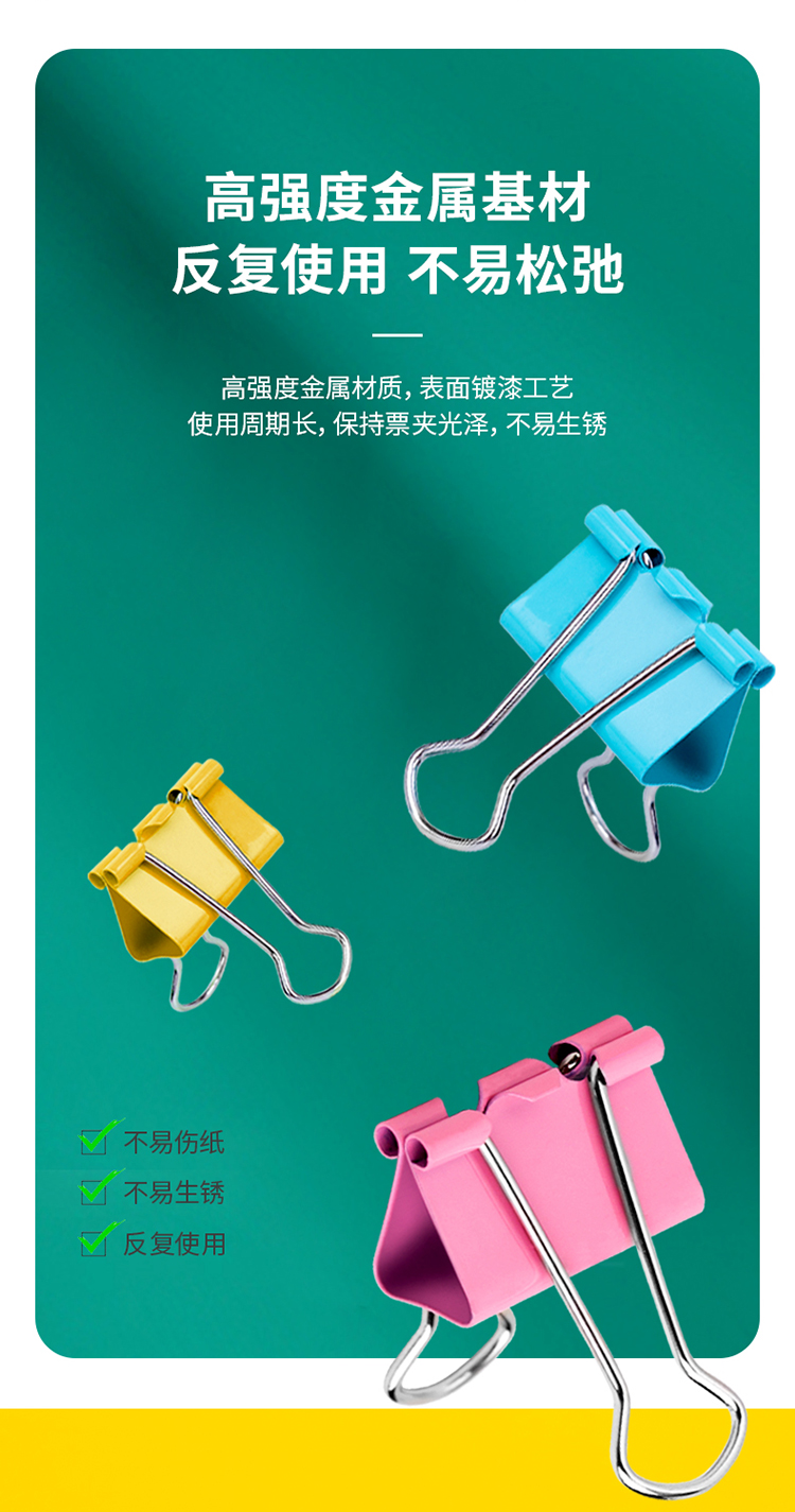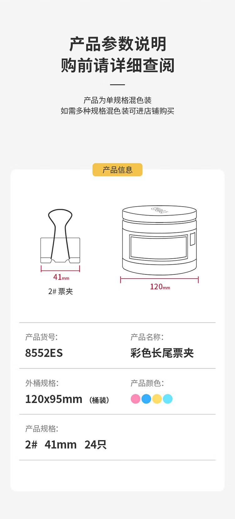 得力(deli) 8552ES 24只41mm彩色长尾夹票夹 2#大号金属燕尾夹 票据文件夹子 24只/筒
