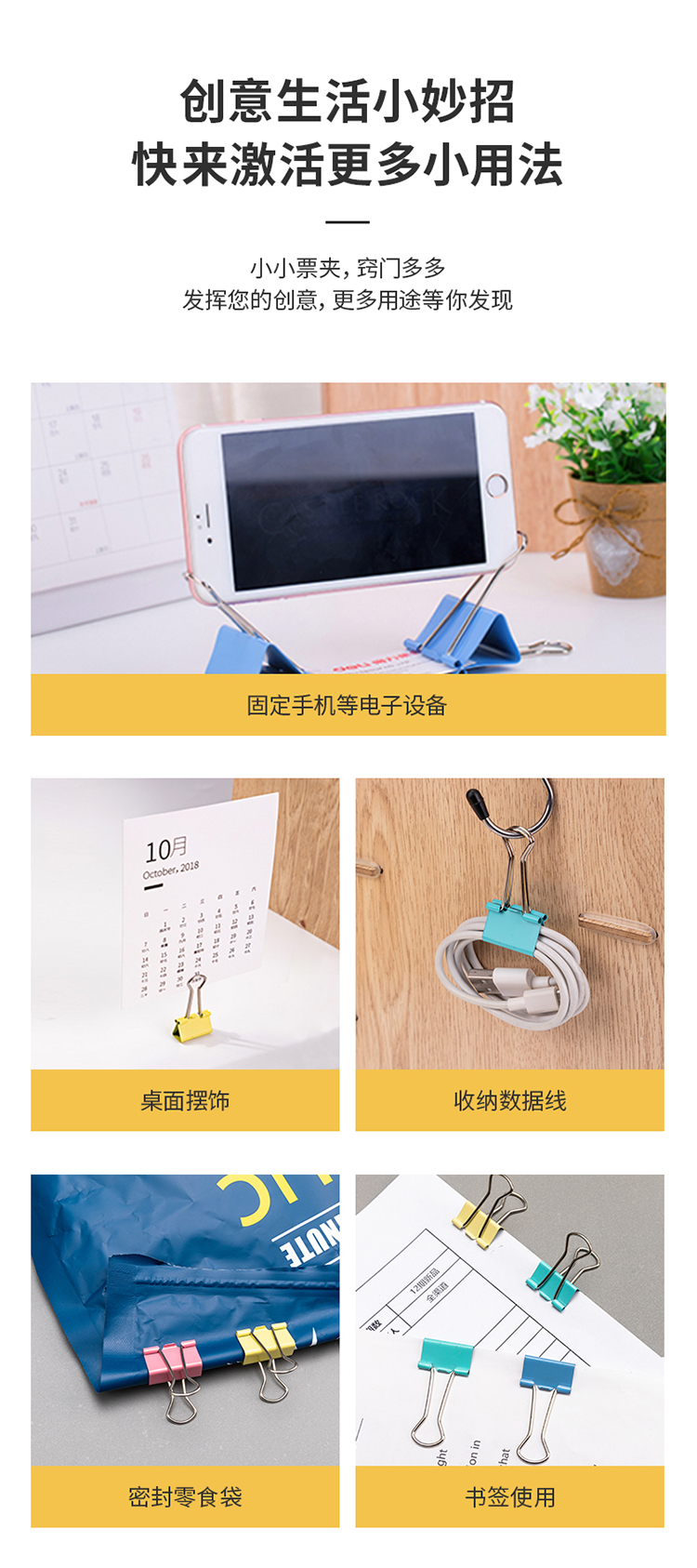 >得力(deli) 8552ES 24只41mm彩色长尾夹票夹 2#大号金属燕尾夹 票据文件夹子 24只/筒