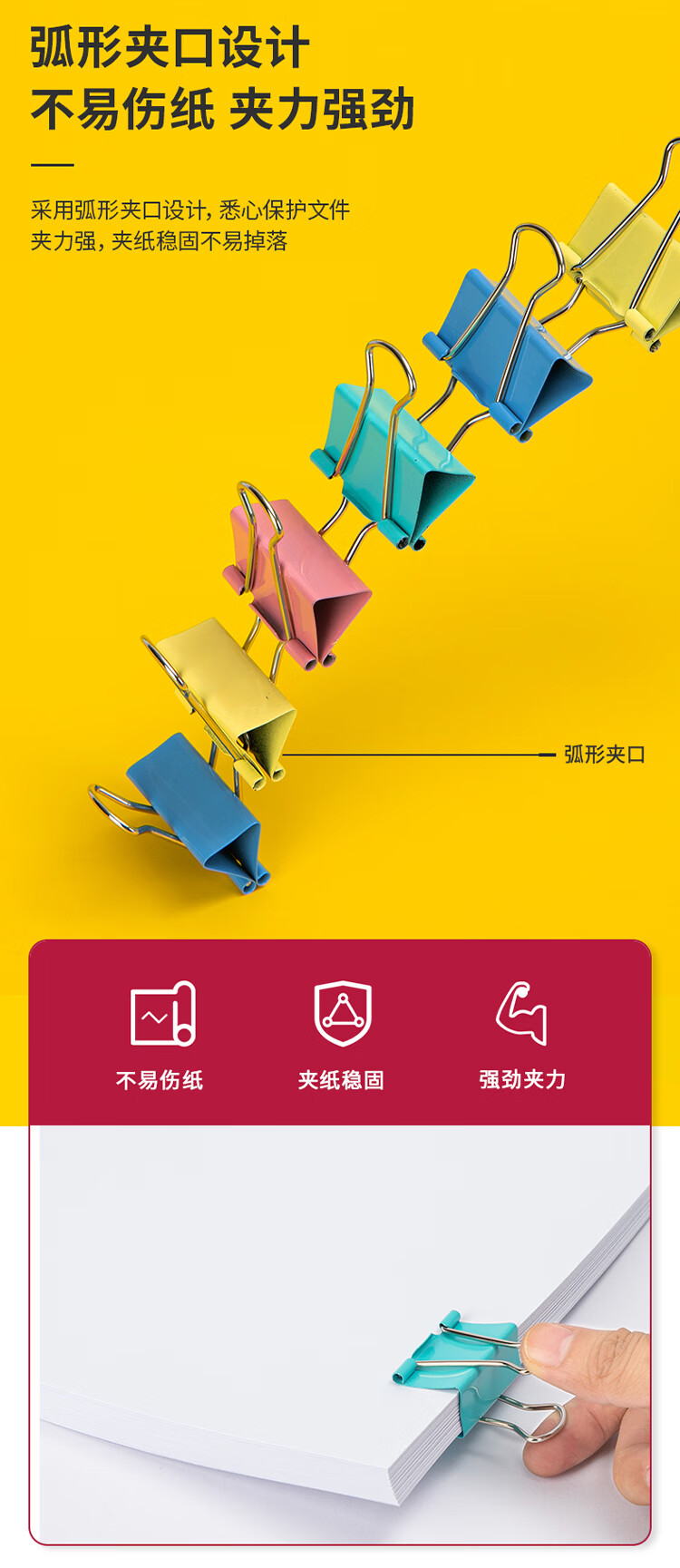 >得力(deli) 8553ES 长尾夹 24只32mm彩色长尾夹票夹 3#中号金属燕尾夹票据文件夹子 24只/筒