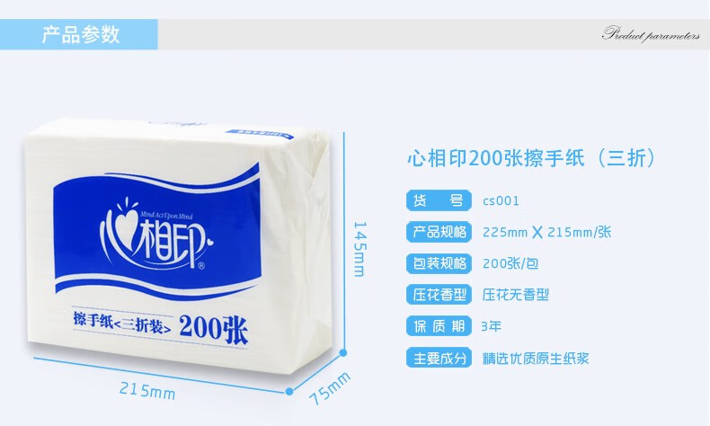 >心相印 CS001 卫生间专用擦手纸 1层200抽*20包卫生间商用檫手纸吸水纸 酒店厨房用纸