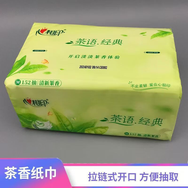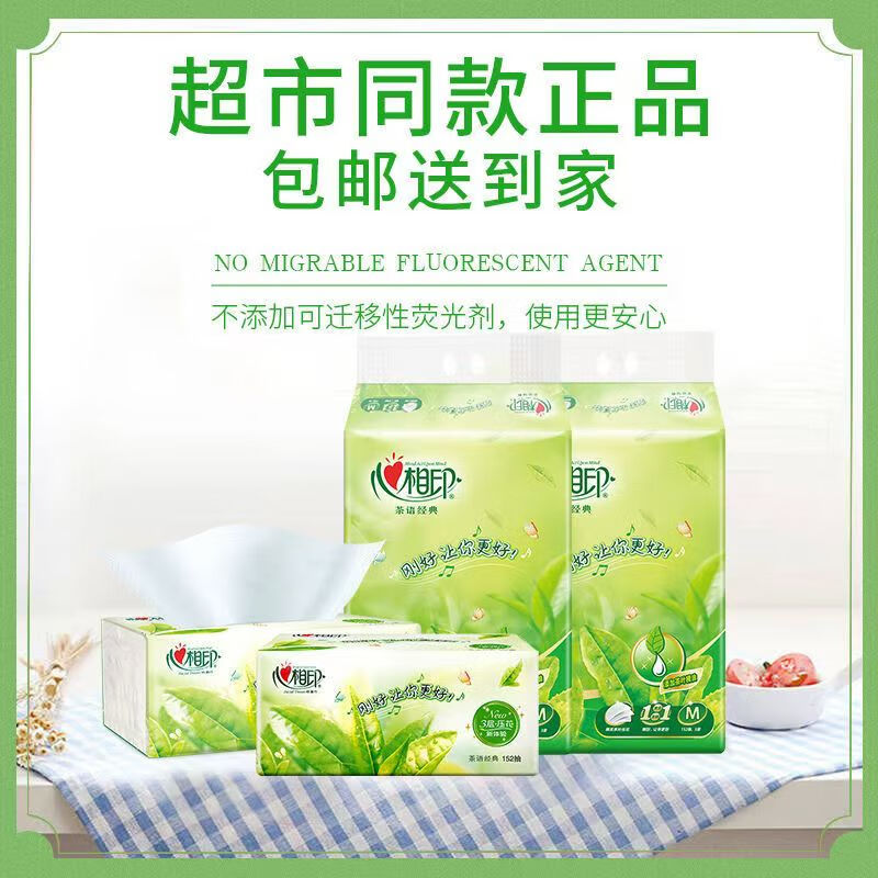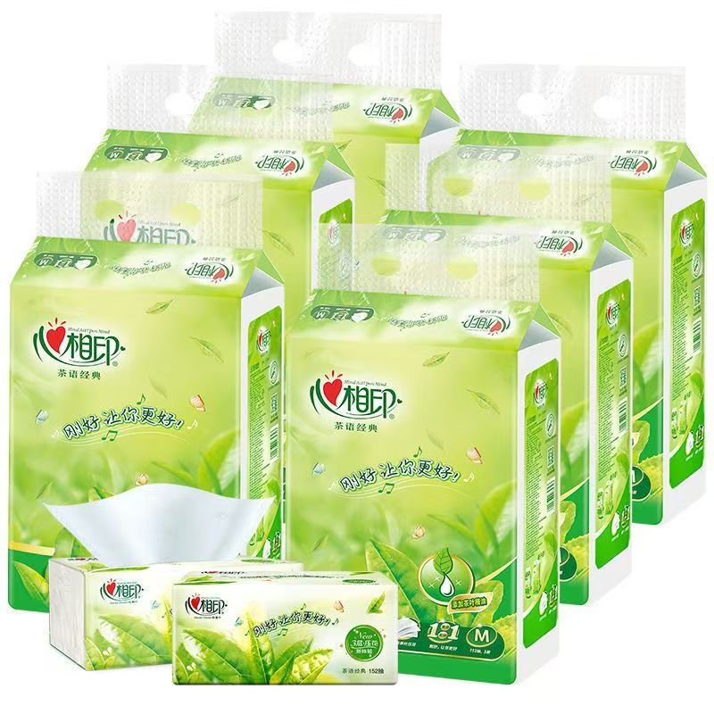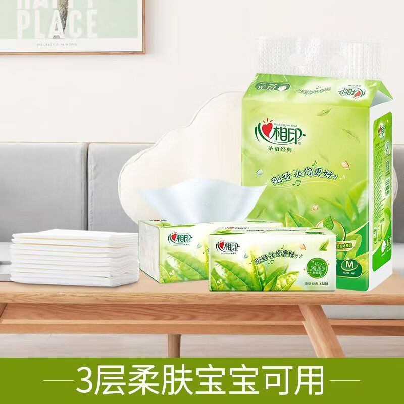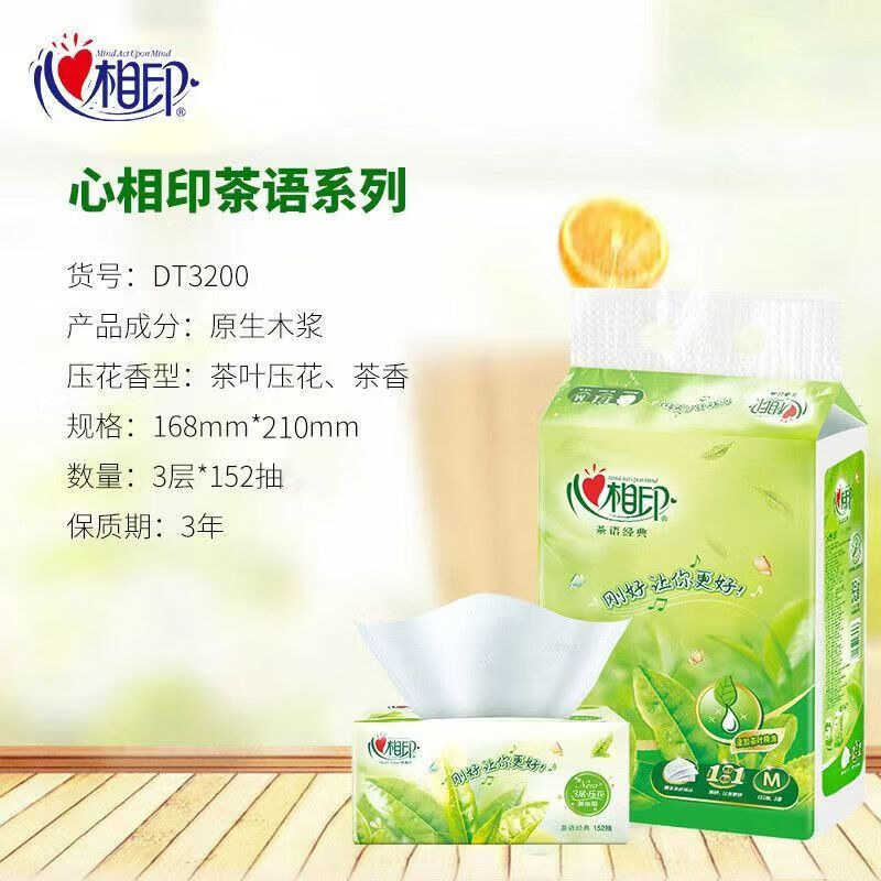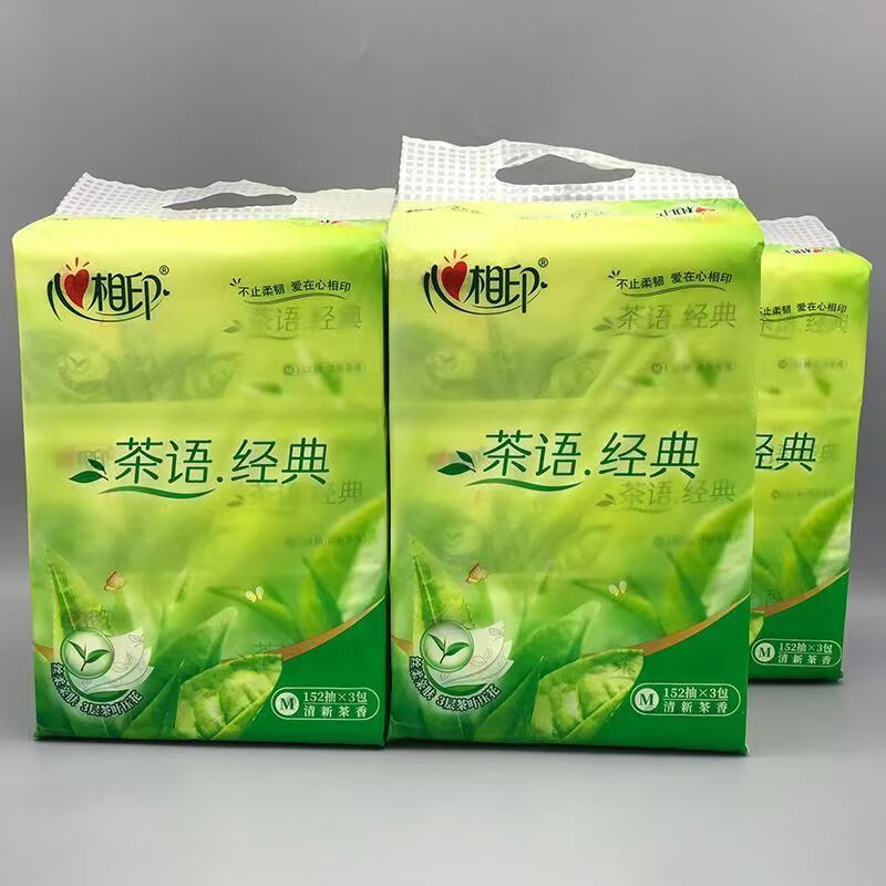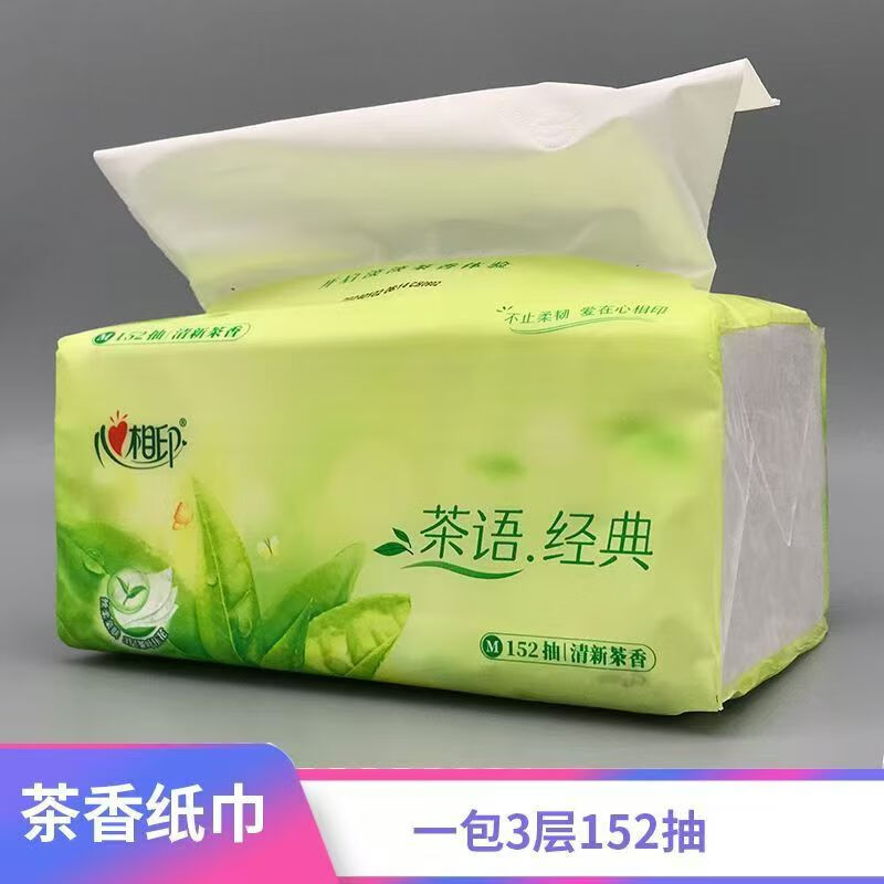 >心相印 DT3200 软包抽取式面纸 茶语清香 152抽M码 中号面巾纸 大包装餐巾纸 抽纸巾 1提3包