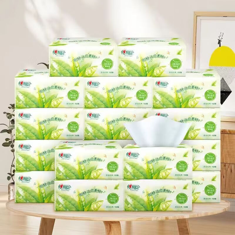 心相印 DT3200 软包抽取式面纸 茶语清香 152抽M码 中号面巾纸 大包装餐巾纸 抽纸巾 1提3包