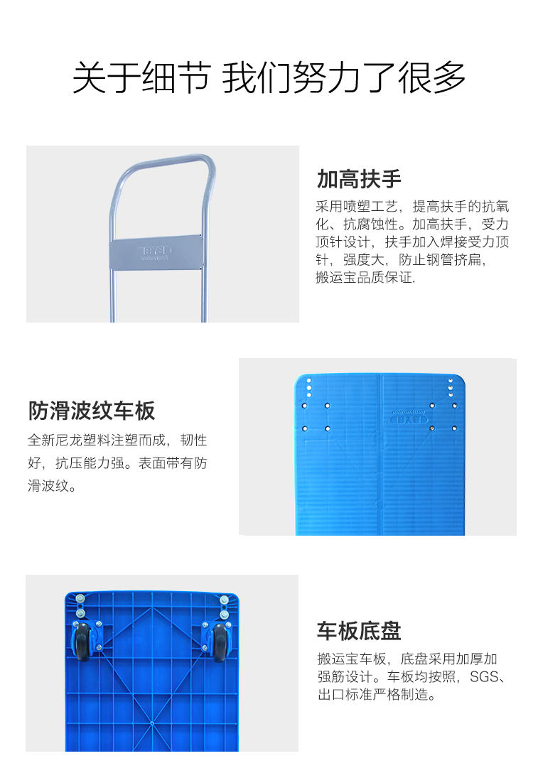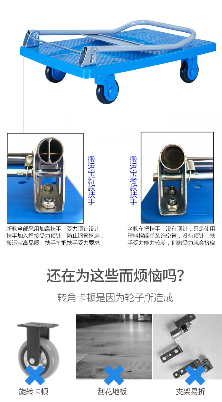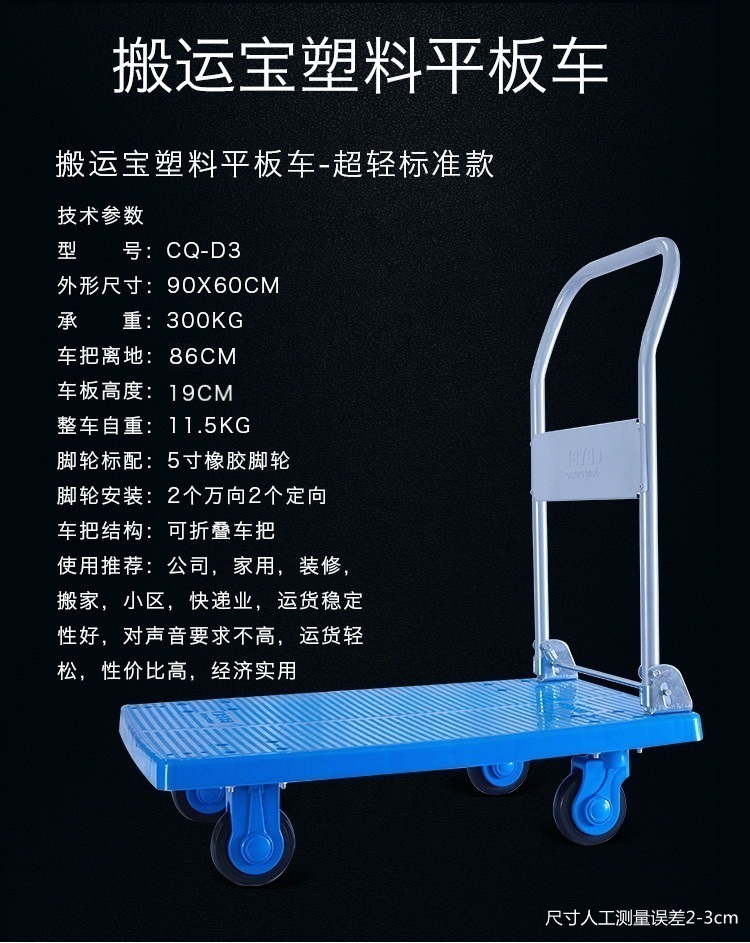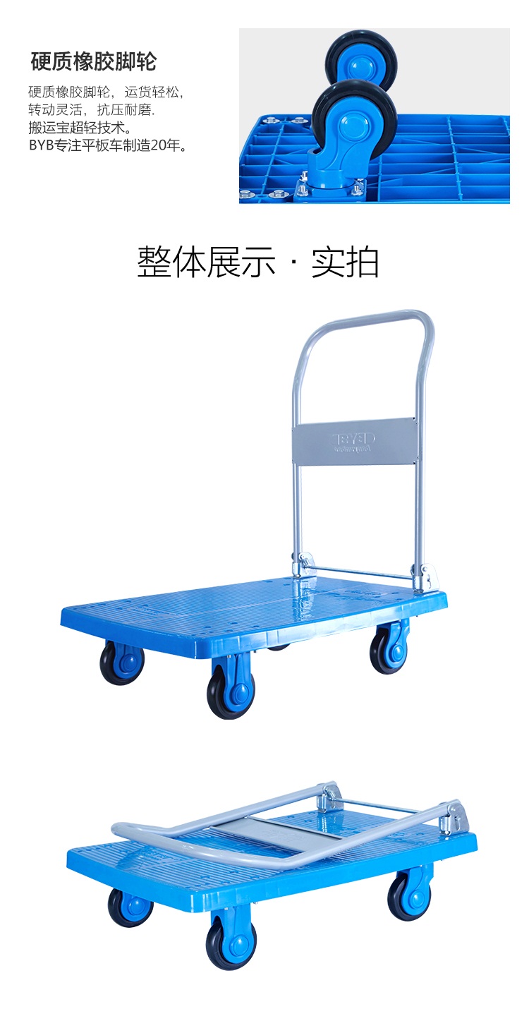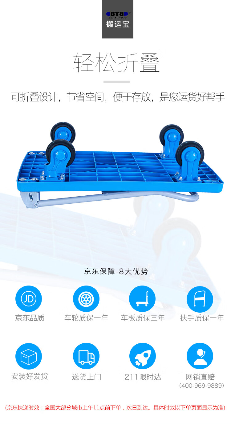搬运宝/BYB CQ-D3 推车 拉货平板车 折叠手推车 拖车手拉货车 90x60cm 承重600斤