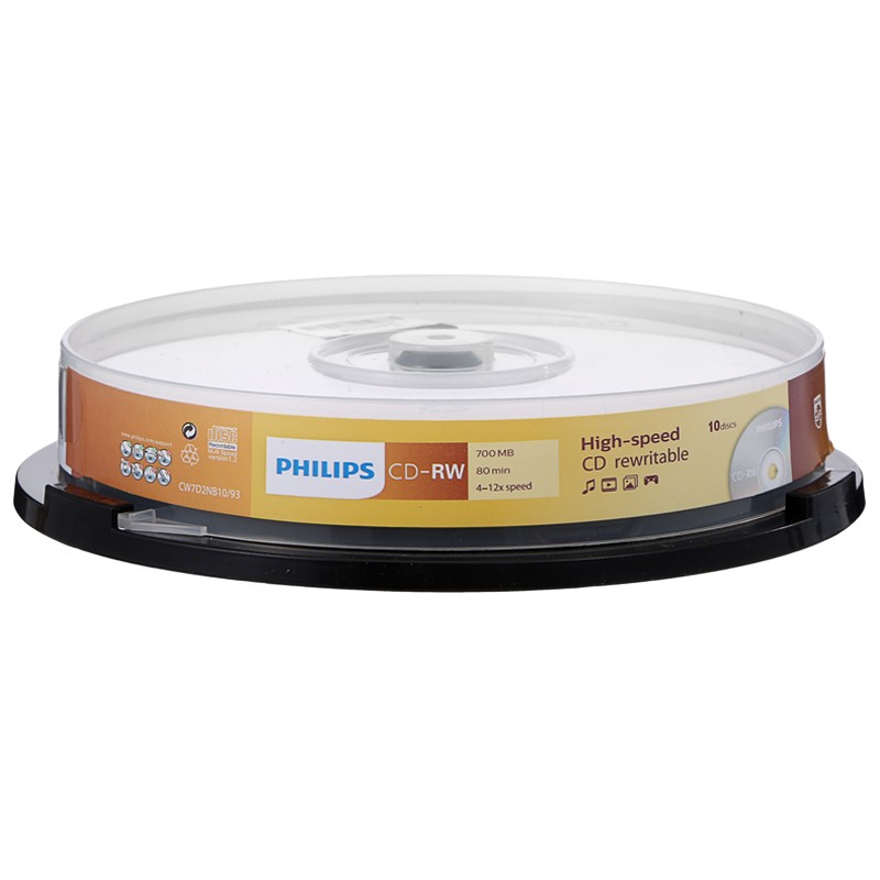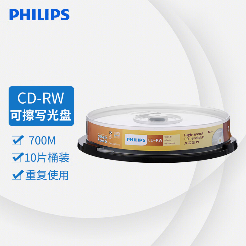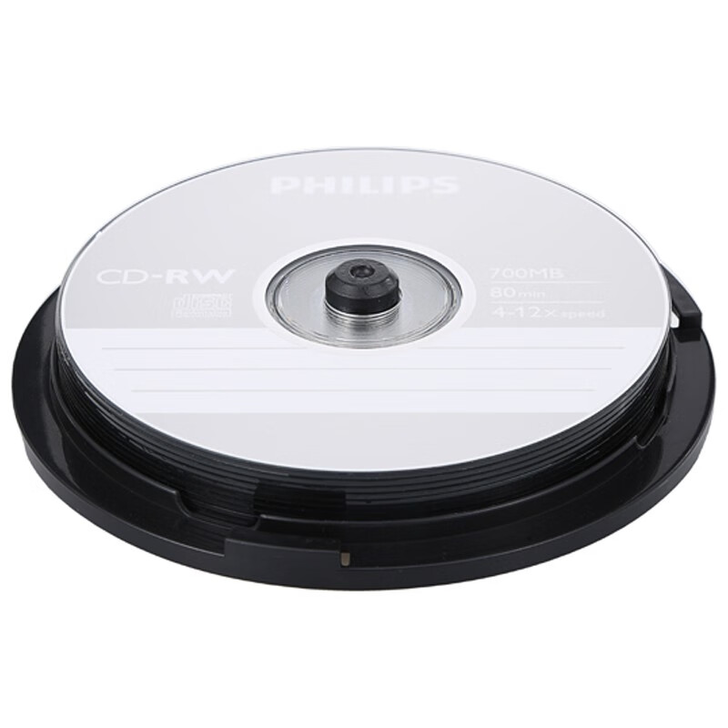 >飞利浦(PHILIPS) CD-RW 光盘 可擦写空白刻录光盘光碟 可重复刻录 10片装 刻录盘700M