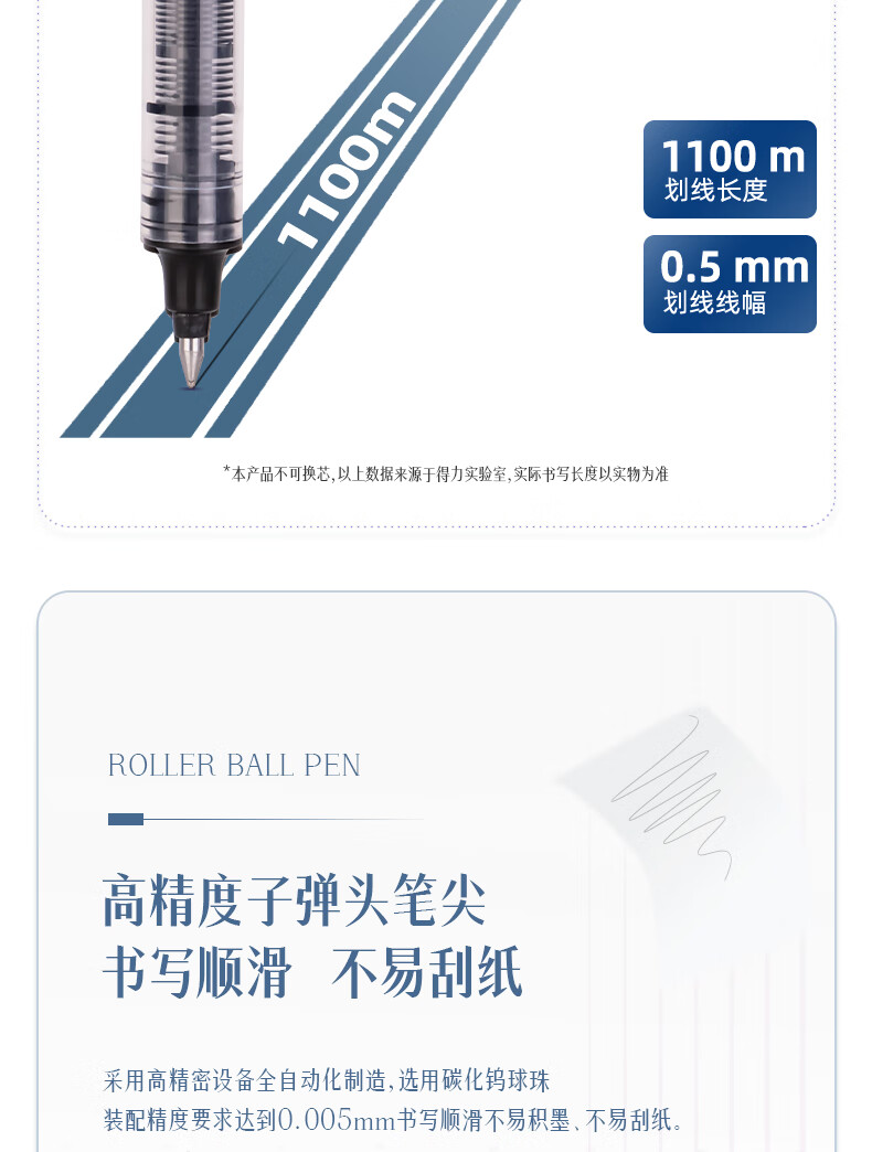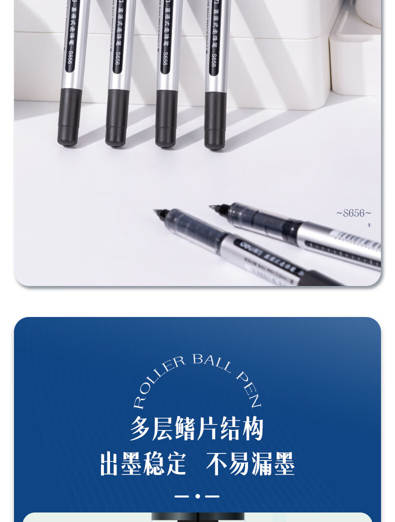 得力(deli) S656 书写用笔类用具 直液笔中性笔 0.5mm子弹头签字笔 走珠笔水笔 黑色 12支/盒