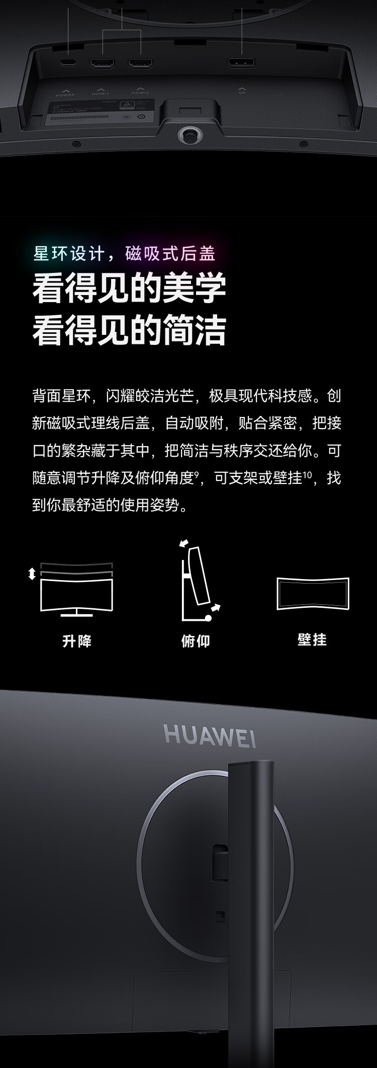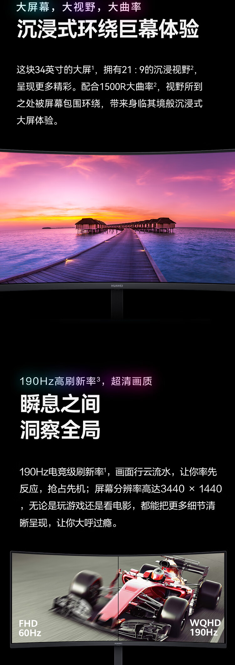 >华为(HUAWEI) ZQE-CBA 液晶显示器 MateView GT 34英寸曲面显示器 WQHD 190Hz带鱼屏 快速液晶1ms 低蓝光无频闪 升降俯仰调节