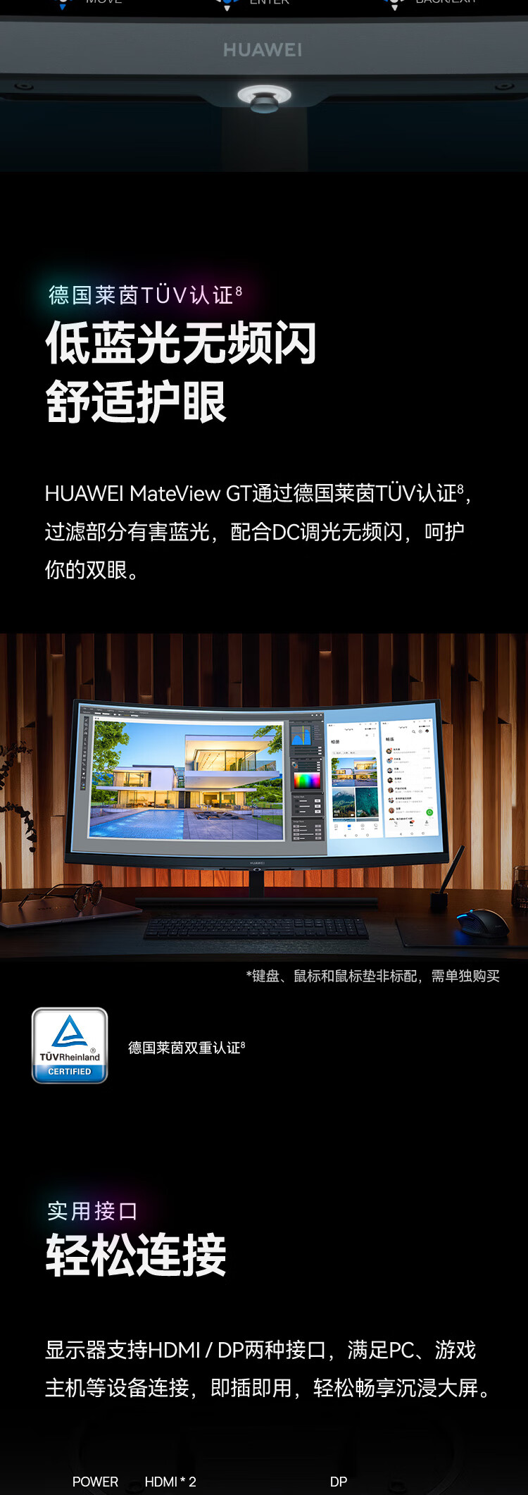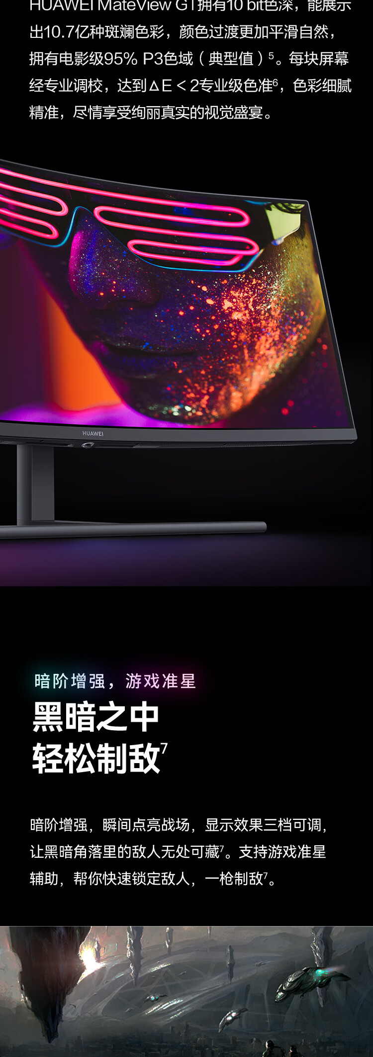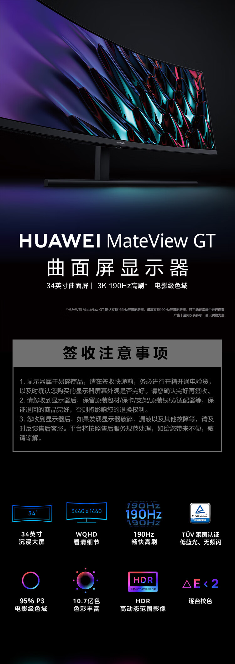 华为(HUAWEI) ZQE-CBA 液晶显示器 MateView GT 34英寸曲面显示器 WQHD 190Hz带鱼屏 快速液晶1ms 低蓝光无频闪 升降俯仰调节