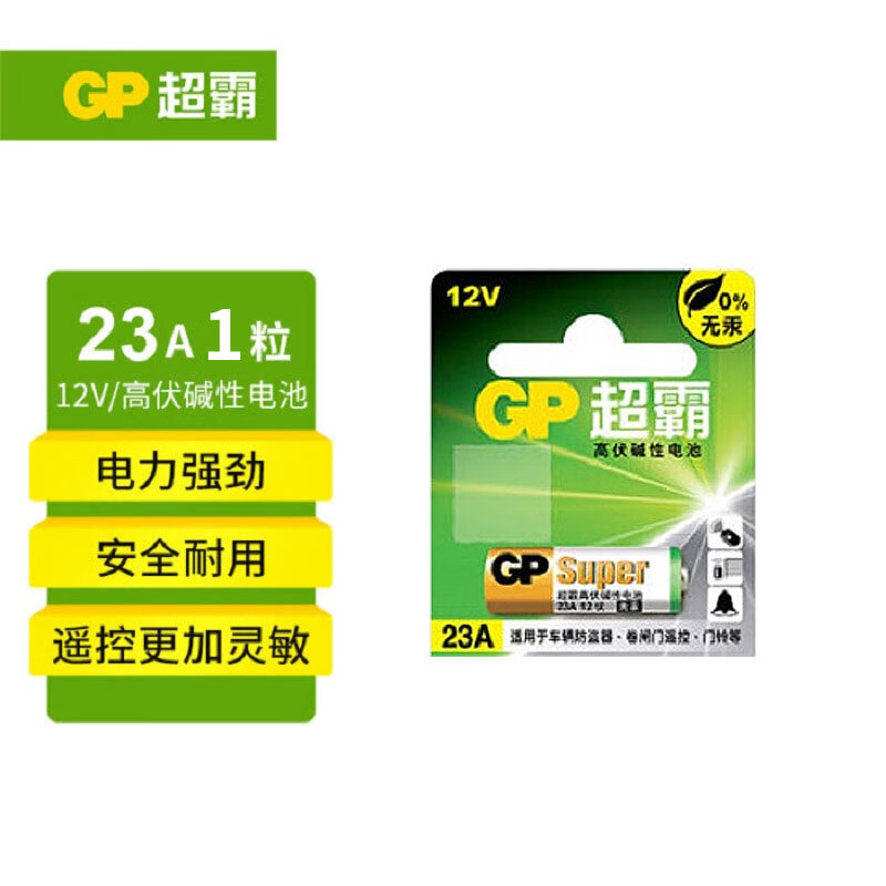 超霸(GP)23A 电池 碱性电池 23A12V 适用车辆防盗器/玩具/门禁/仪器/电动工具/遥控器 1粒