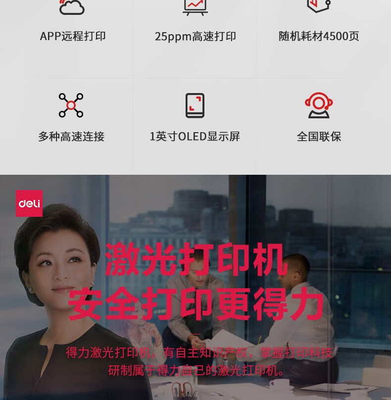 得力(deli)P2000dnw A4黑白打印机 云打系列 黑白激光打印机