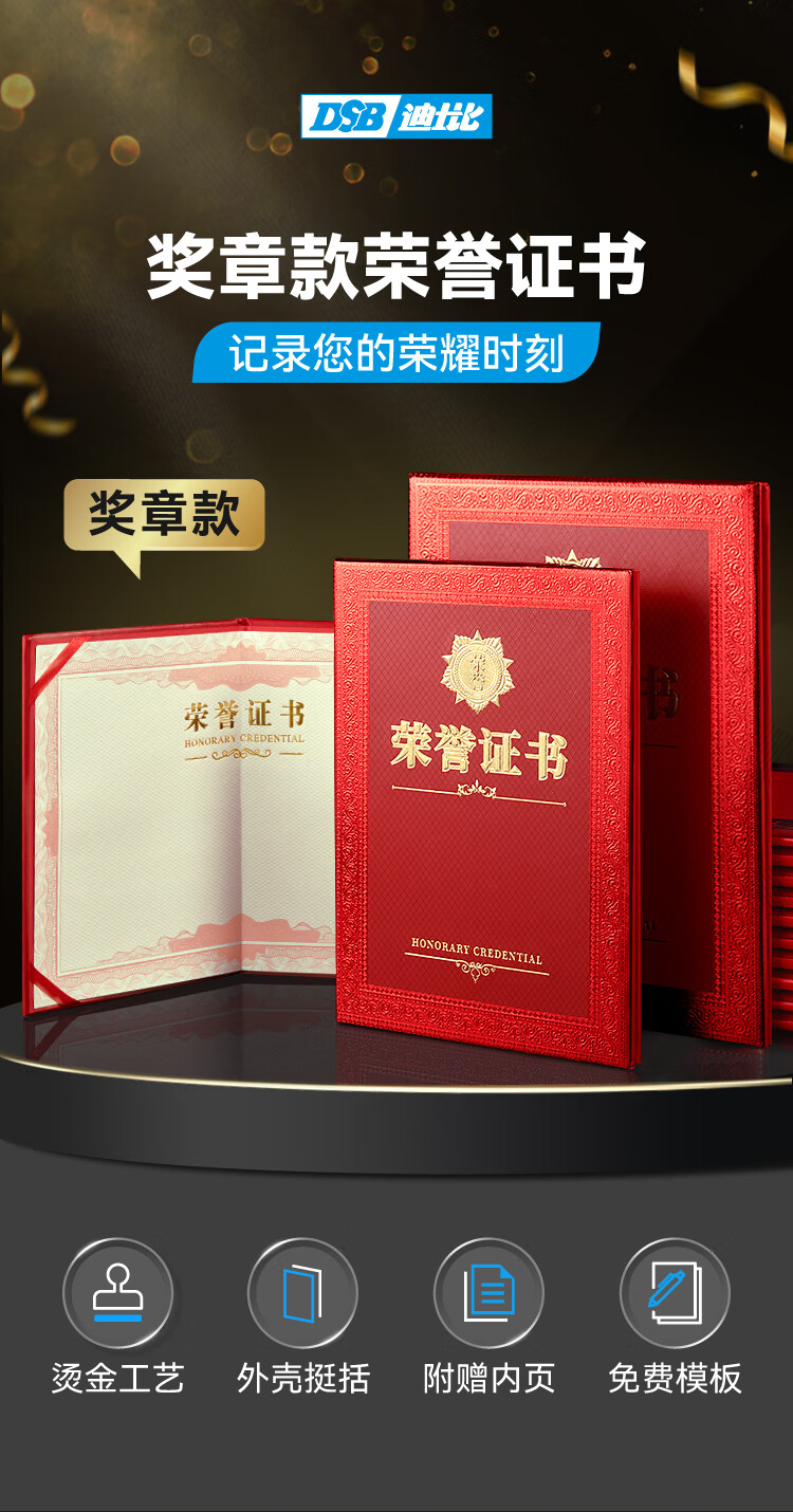 DSB 051017 薄本册 12K/1本装奖章款荣誉证书外壳 奖状定制光面烫金高档封皮 获奖保护套 年会颁奖