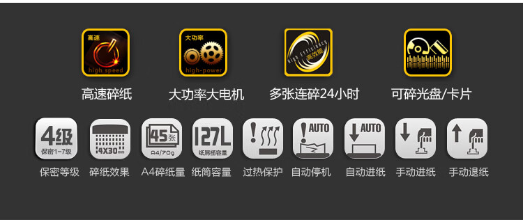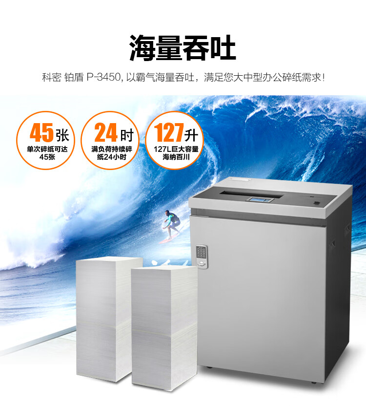 >科密(comet)P-3450 碎纸机 24小时大型工业级4级保密高速销毁 127L大容量 办公商用 文件颗粒粉碎机