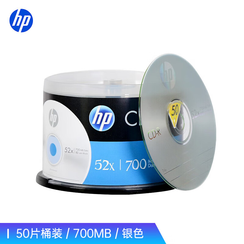 惠普(HP) CD-R 光盘 刻录光盘 空白光盘 办公用 【50片 700MB 银色】