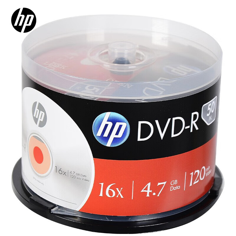 >惠普(HP) DVD-R 光盘 刻录光盘 空白光盘 办公用 【50片 4.7GB 银色】