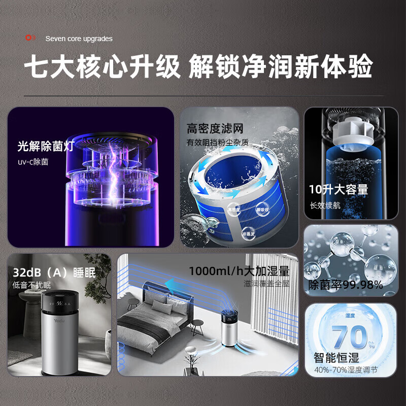 >亚都/YADU 加湿器 SZ800-YXS80C 无雾加湿器 大容量 空气净化除菌智能恒湿 落地式 冷蒸发大面积增湿