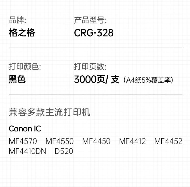 >格之格 CRG-328 硒鼓 适用佳能mf4752 4710 4712 4890 4550 4412 4450打印机墨粉278A硒鼓佳能 3000页 黑色 单支