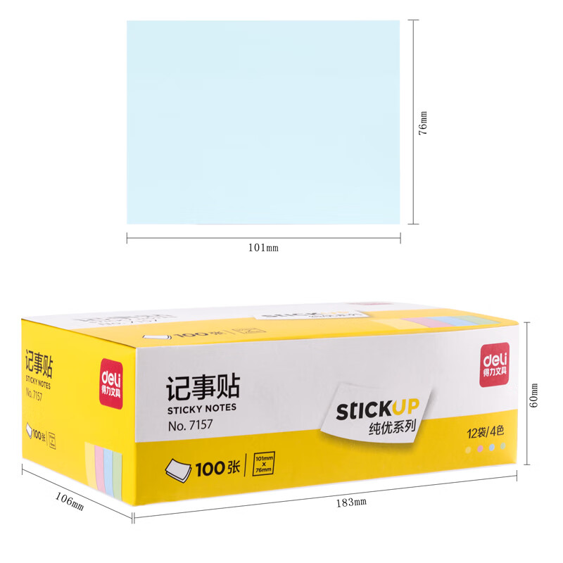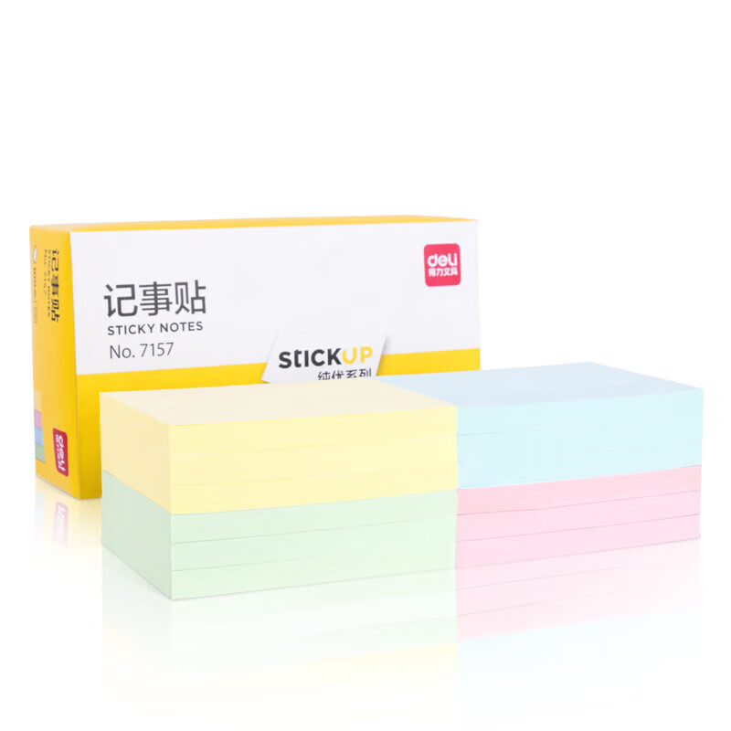 >得力(deli)记事贴 7157 100张/本便利贴76*100mm 备忘便签纸 易撕好贴优事贴 记事贴 自粘留言本 笔记本本子(混)
