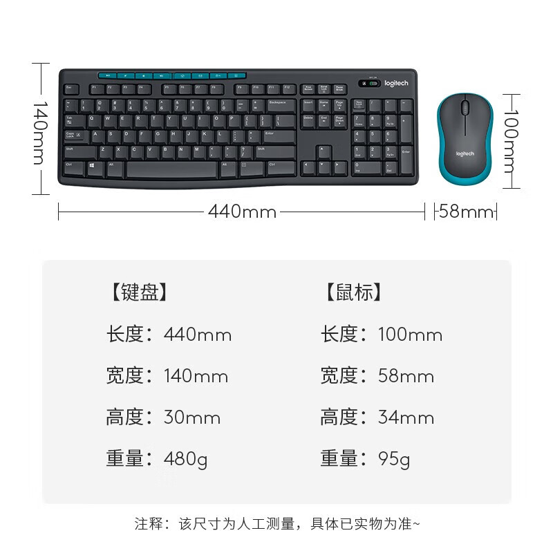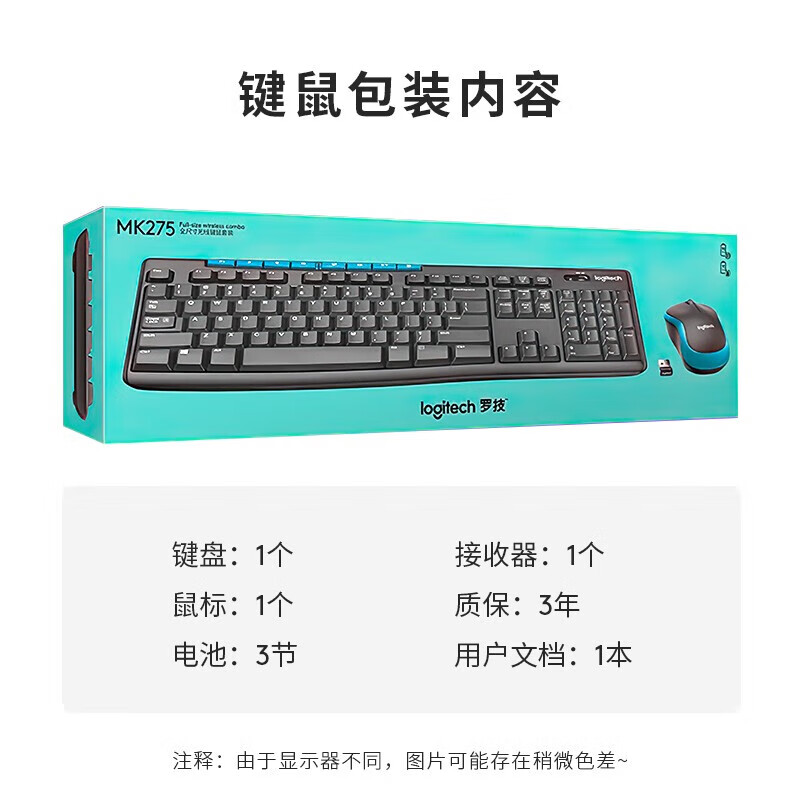 >罗技(Logitech)鼠标 MK275 键鼠套装 无线键鼠套装 办公键鼠套装 全尺寸 商务键鼠套装 带无线2.4G接收器 黑色