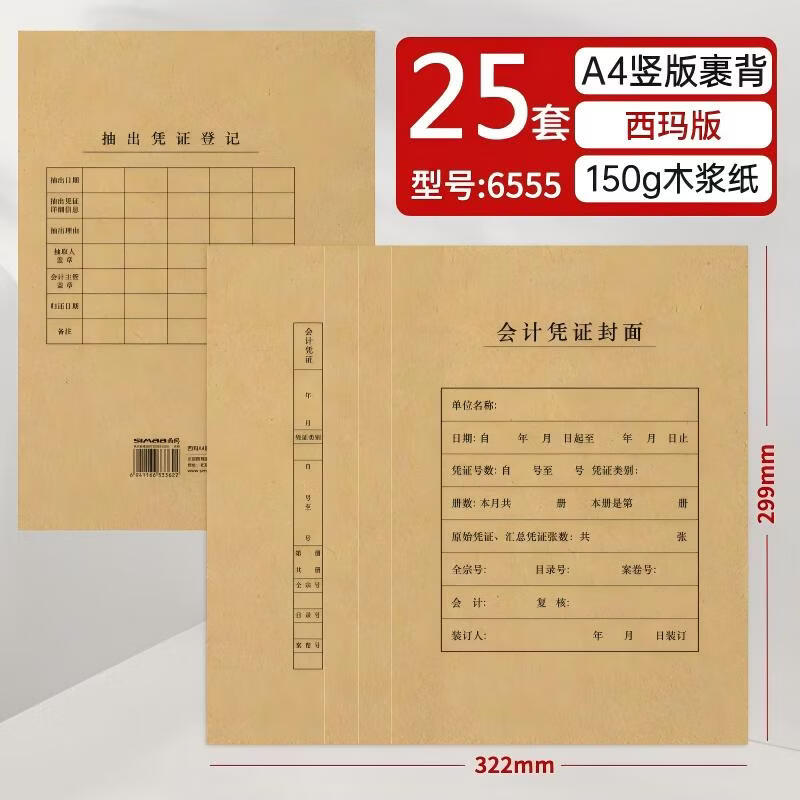 西玛(SIMAA)单据凭证 6555 a4裹背式凭证封面 会计凭证封面 牛皮纸装订封皮通用记账凭证封面 25套 A4横版裹背