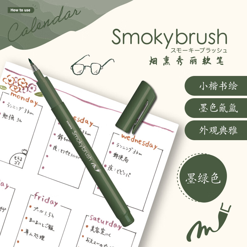 >斑马牌(ZEBRA)书写用笔类用具 WF9 墨绿色 小楷烟熏色系秀丽软笔 学生毛笔练字笔 彩色绘画笔记手账水彩笔 单支装